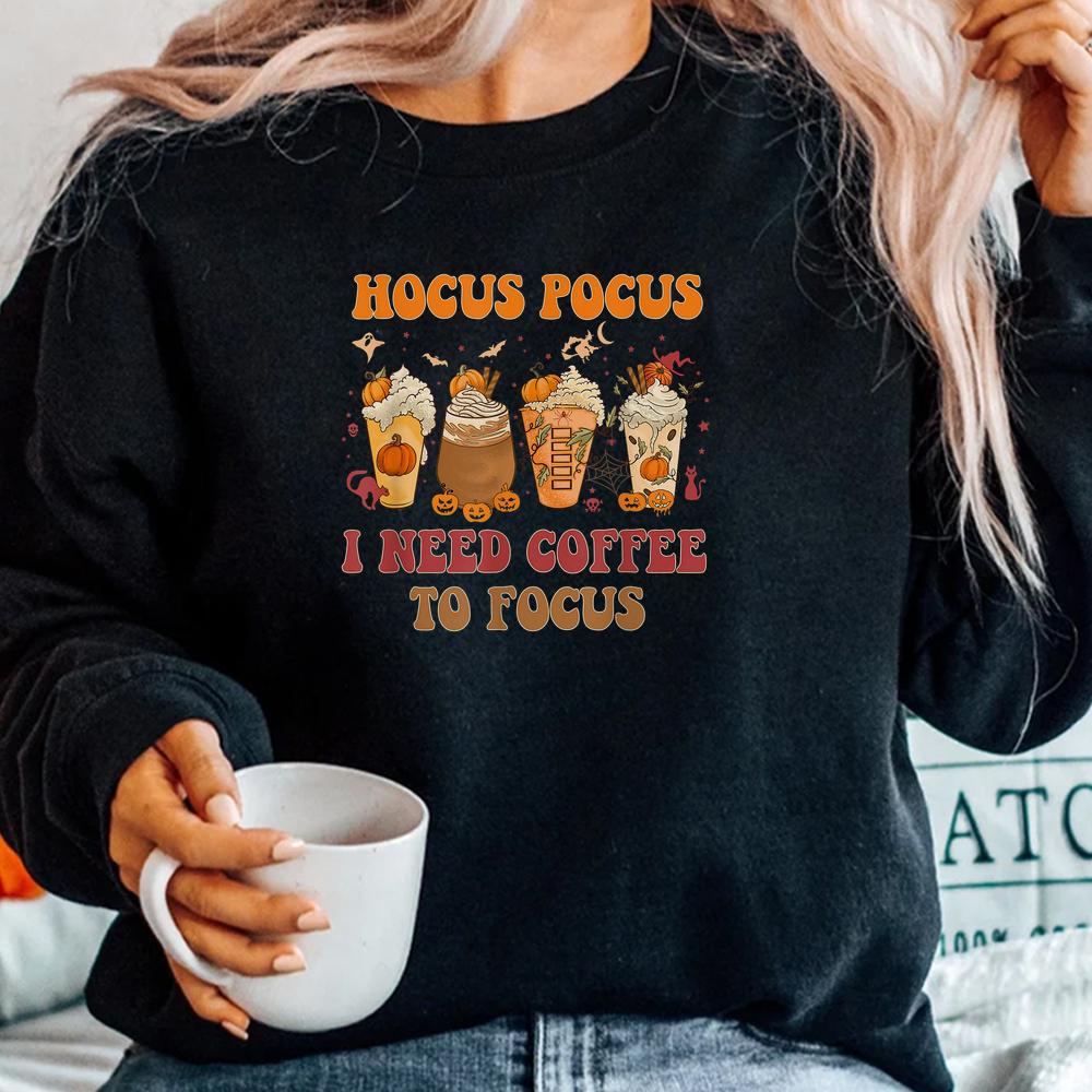 Groovy Hocus Pocus I Need Coffee To Focus Halloween Shirt, hoodie, sweatshirt, long sleeve and ladies T-shirt