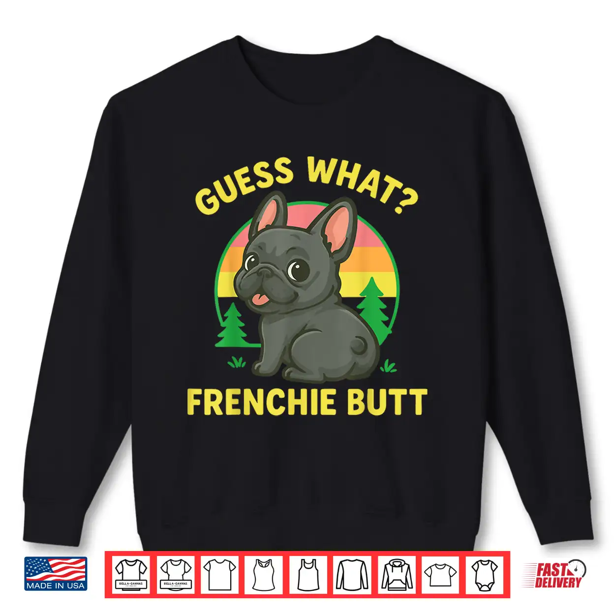 Guess What Frenchie Butt Funny Quote Dog Humor Joke Slogan Sarcastic Daily Laugh Relatable Animal Soul Graphic Tee