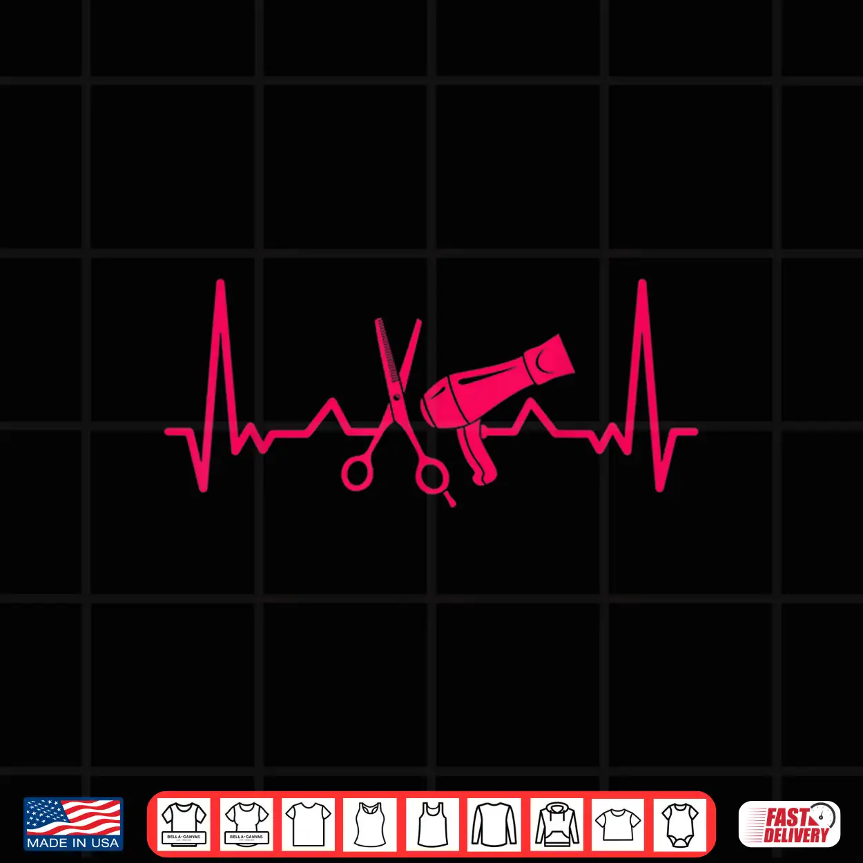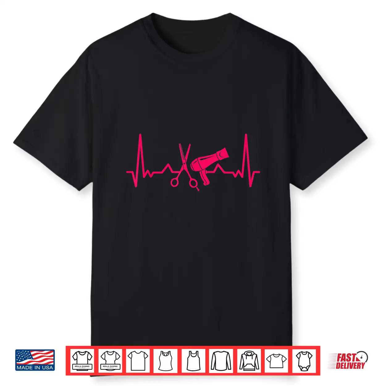 Hairdresser Gift Scissors Dryer Heartbeat Hairstylist Shirt