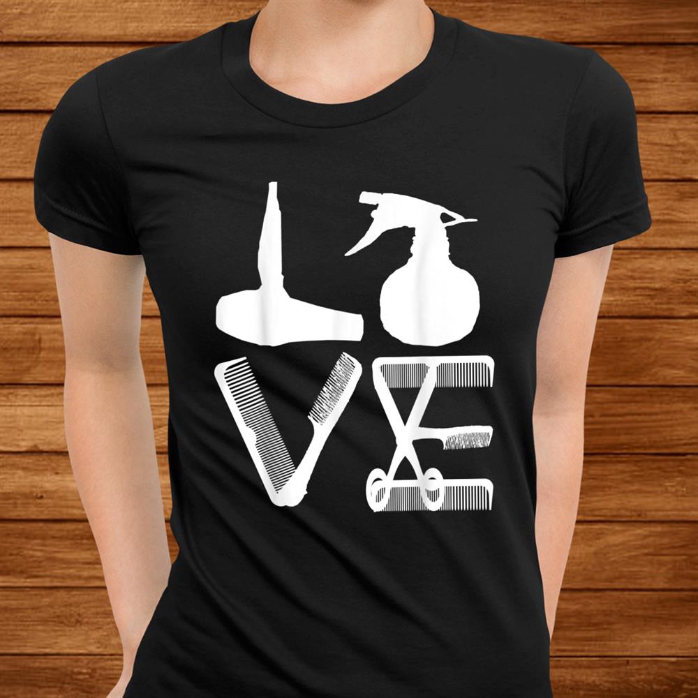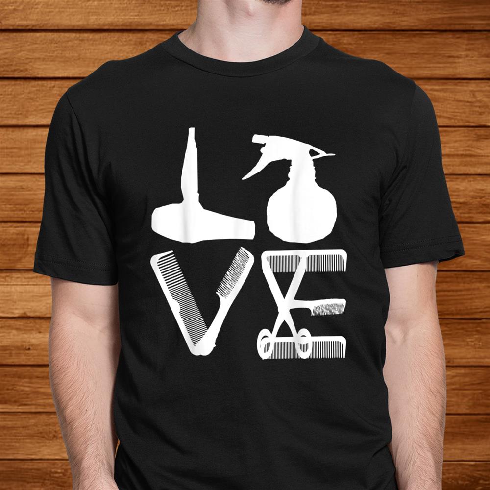 Hairdresser Love Hairdryer Scissors Barber Hair Brush Shirt