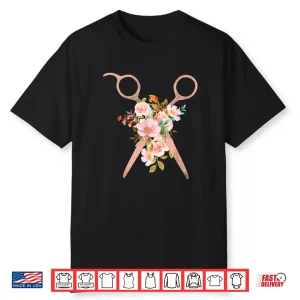Hairstylist Floral Scissors Hairdresser Barber Salon Shirt