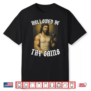 Hallowed Be Thy Gains Fitness Motivation Spiritual Graphic Shirt