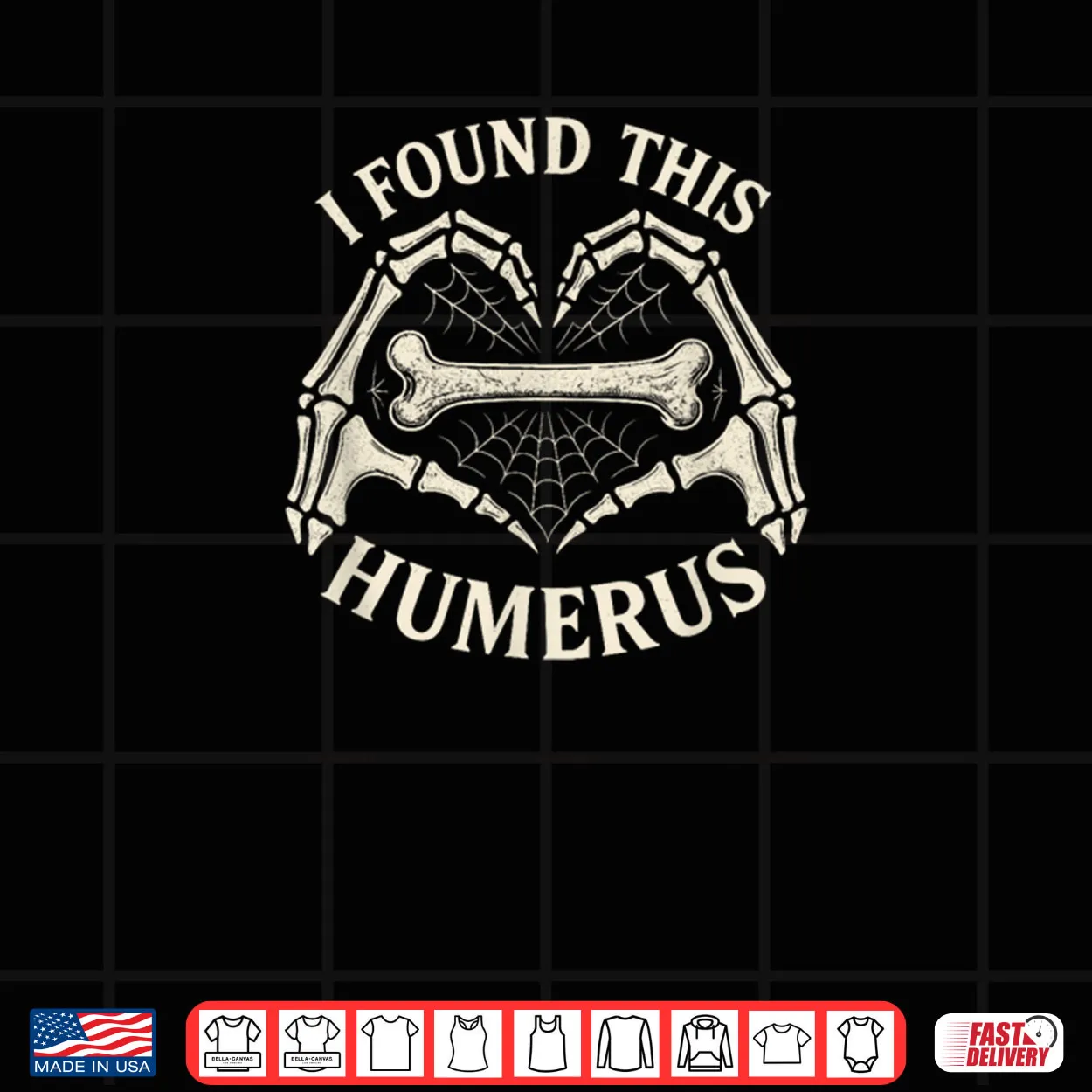 I Found This Humerus, Skeleton Hands, Halloween, Funny, Sarcastic, Witty, Quote, Spooky, Costume, Humor