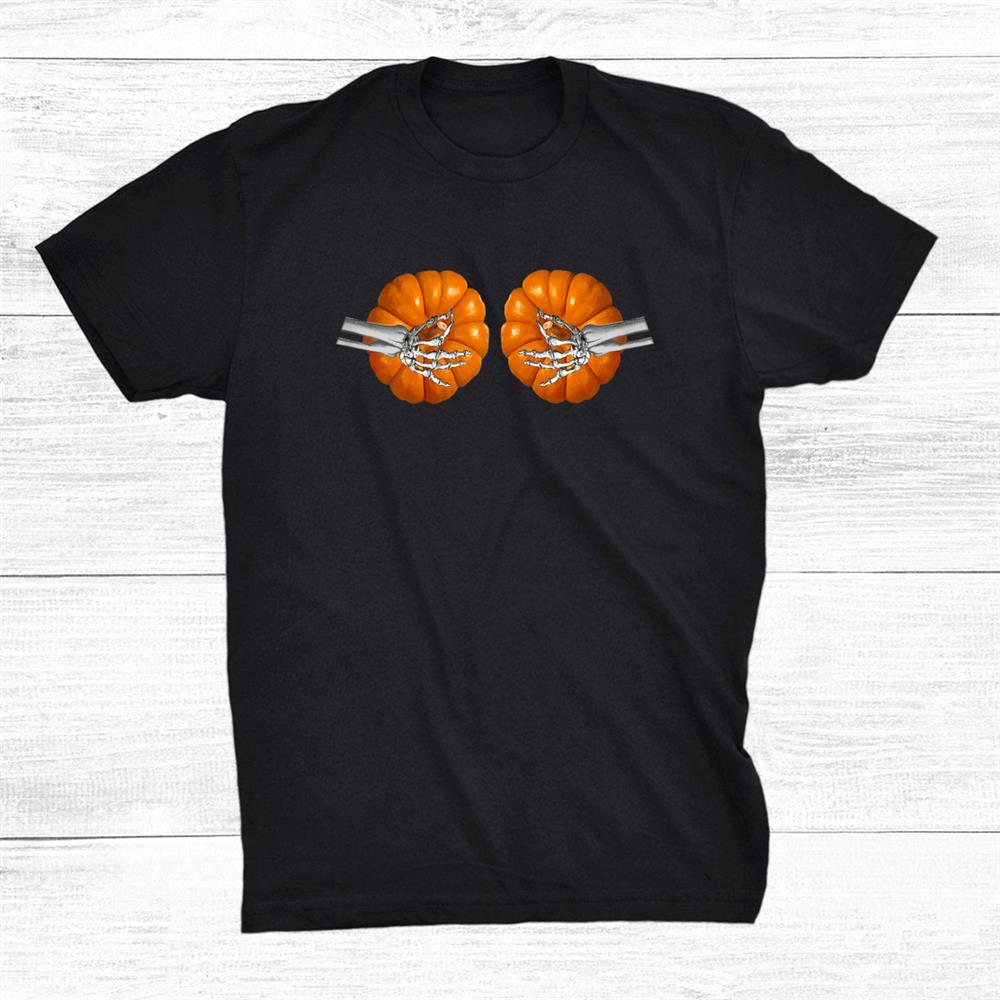 Halloween Pumpkin Bikini Skeleton Pumpkin Boobs Shirt, hoodie, sweatshirt, long sleeve and ladies T-shirt