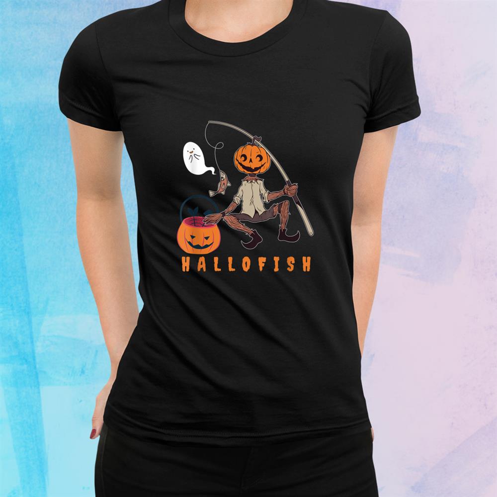 Halloween Pumpkin Fisherman Fishing Rod Fish Angler Cute Shirt