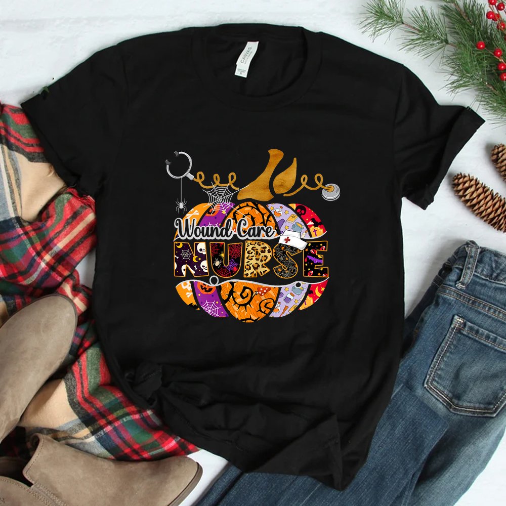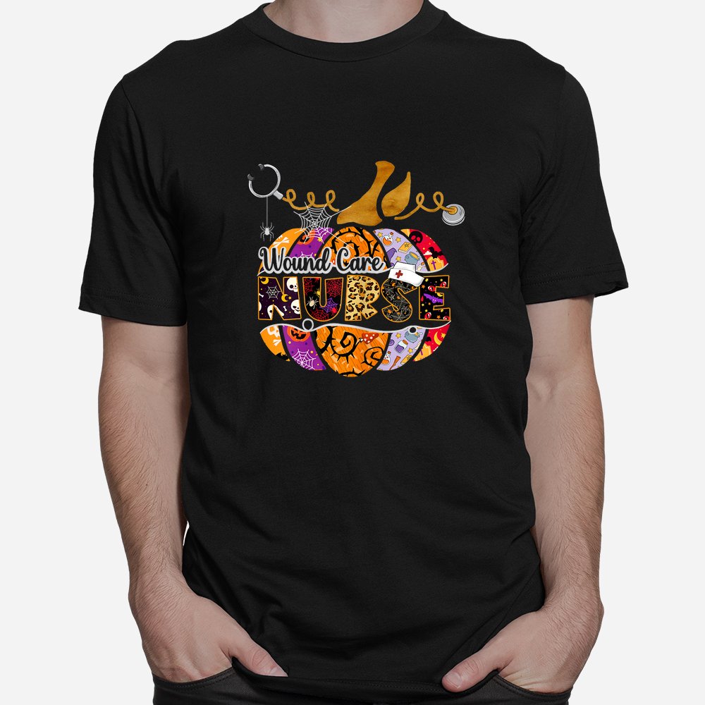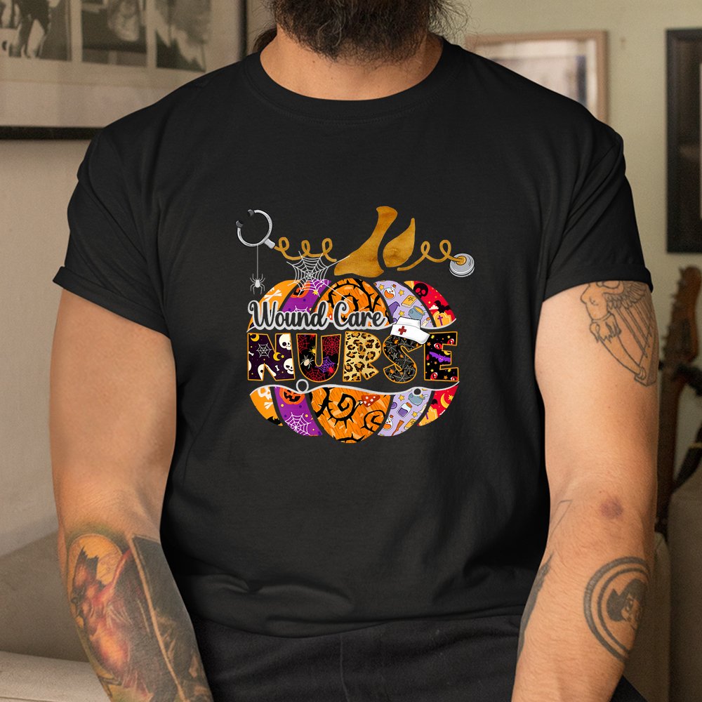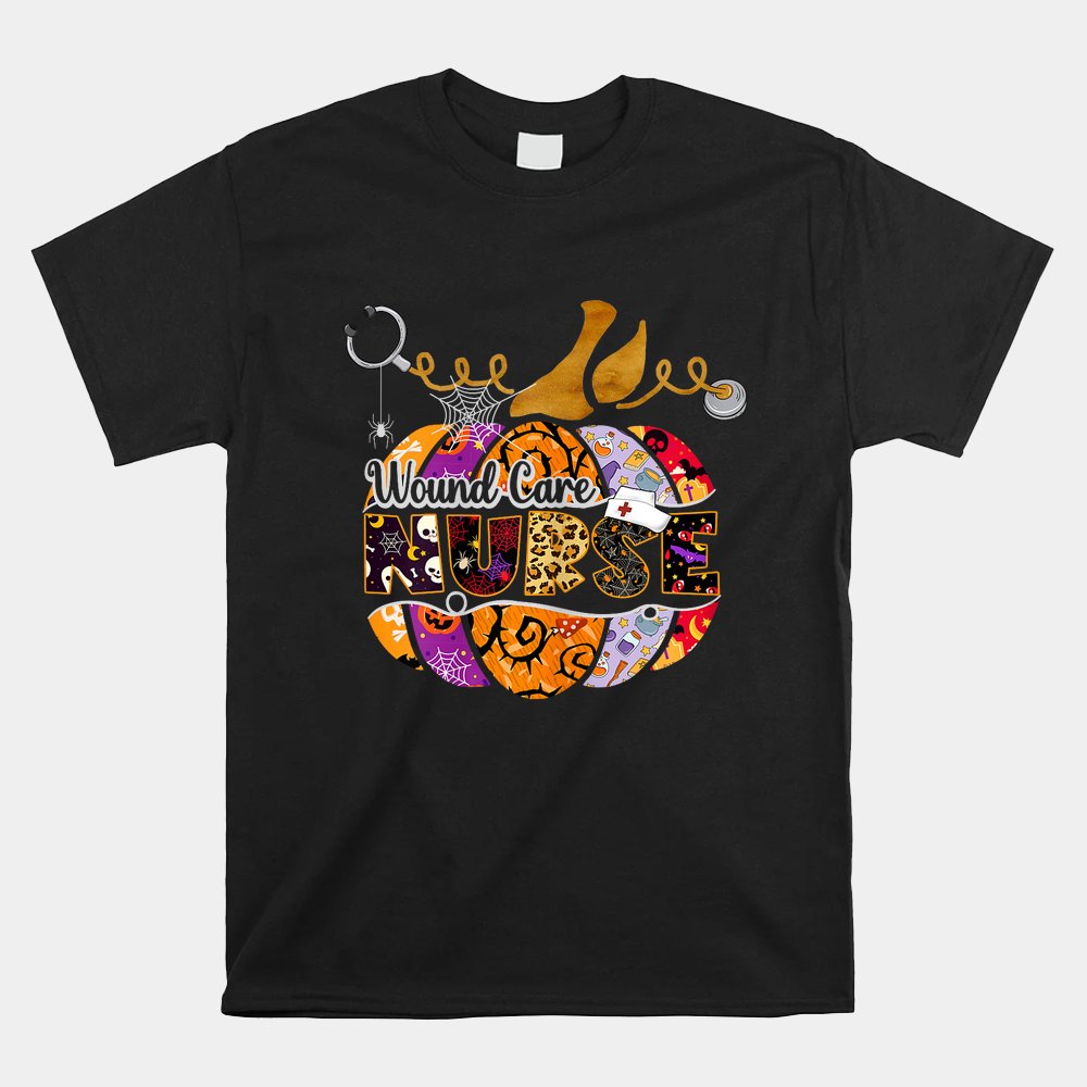 Halloween Scrubs Pumpkin Leopard Wound Care Nurse Shirt, hoodie, sweatshirt, long sleeve and ladies T-shirt