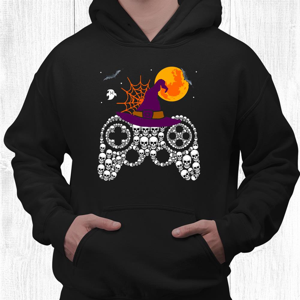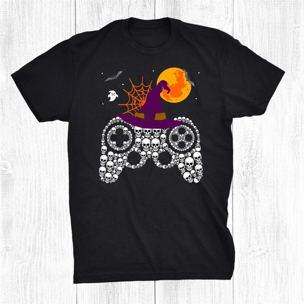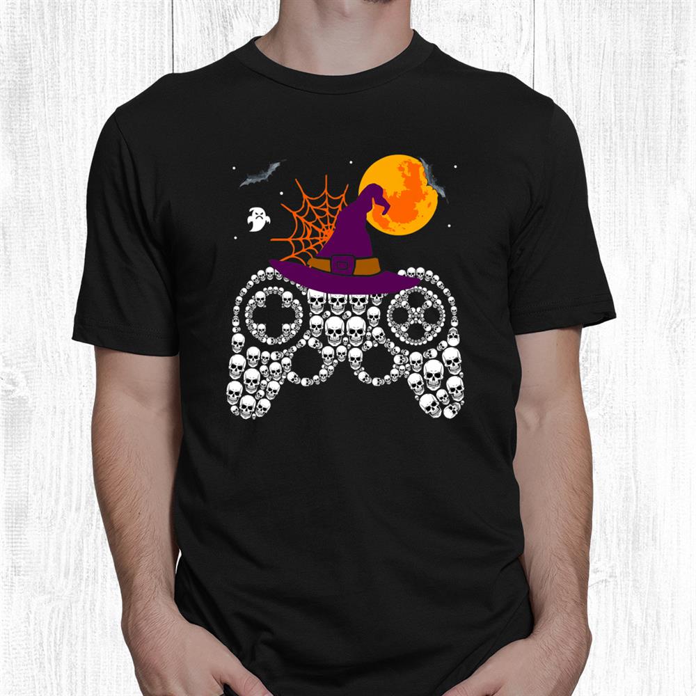 Halloween Skull Funny Gamer Witch Hat Gaming Shirt