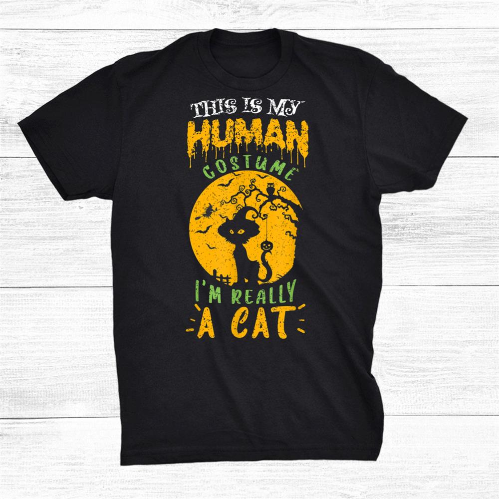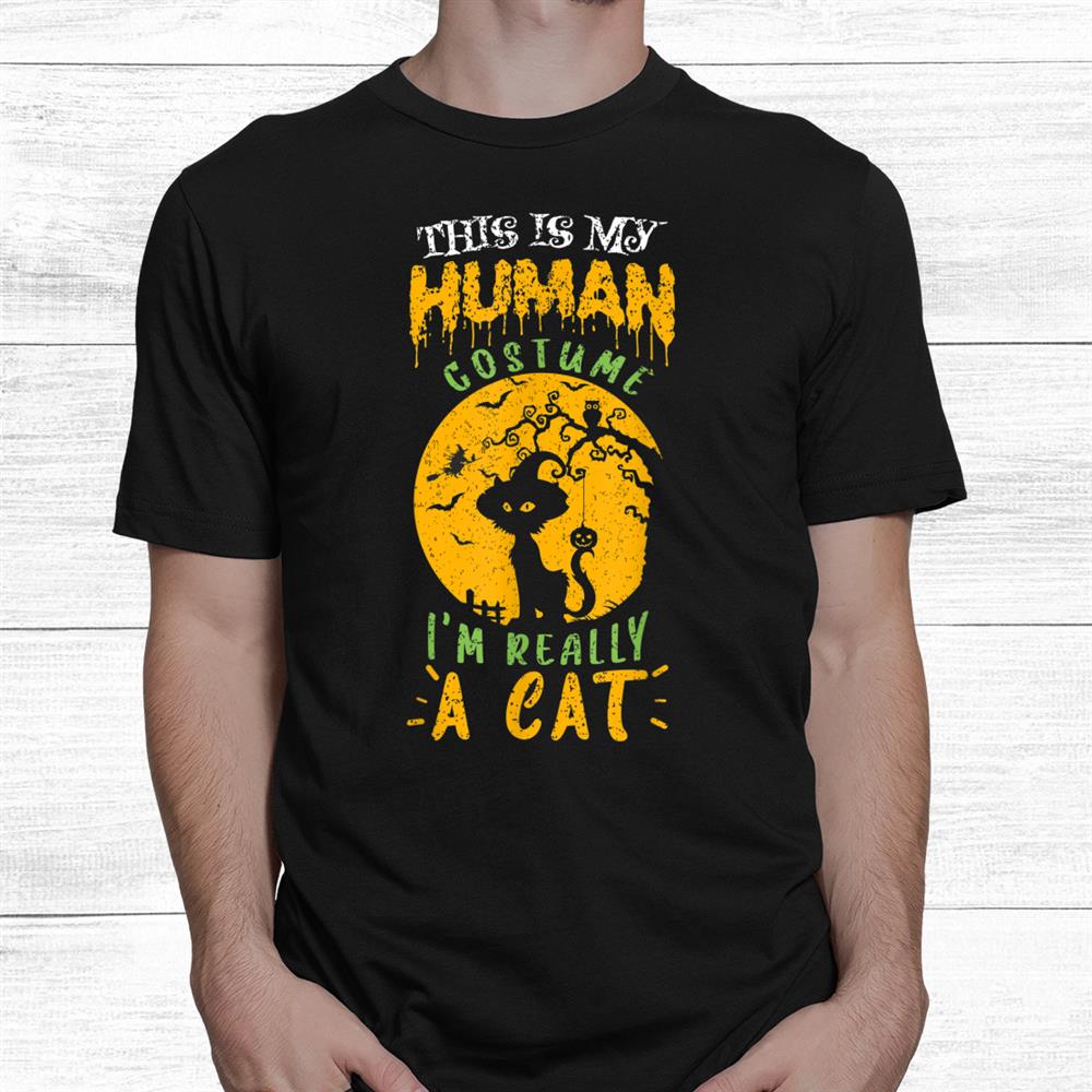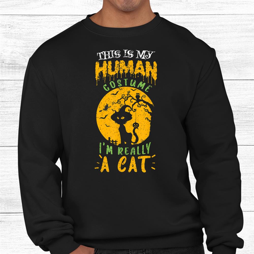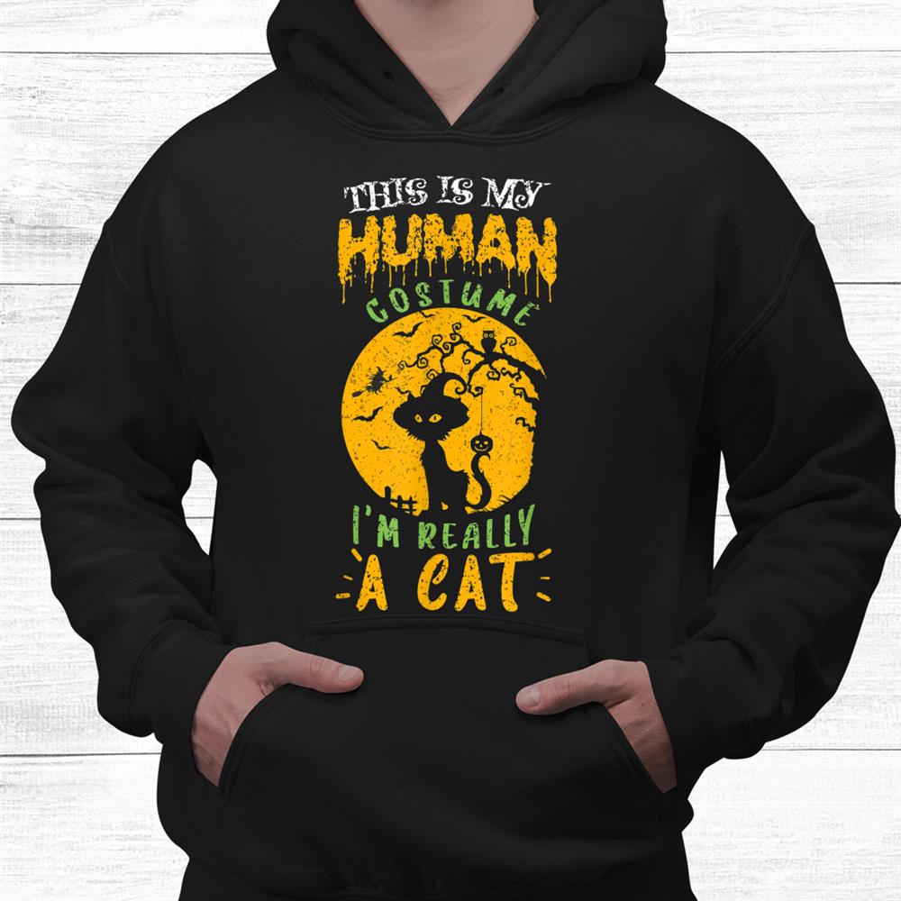 Halloween This Is My Human Costume I’m Really A Cat Shirt, hoodie, sweatshirt, long sleeve and ladies T-shirt