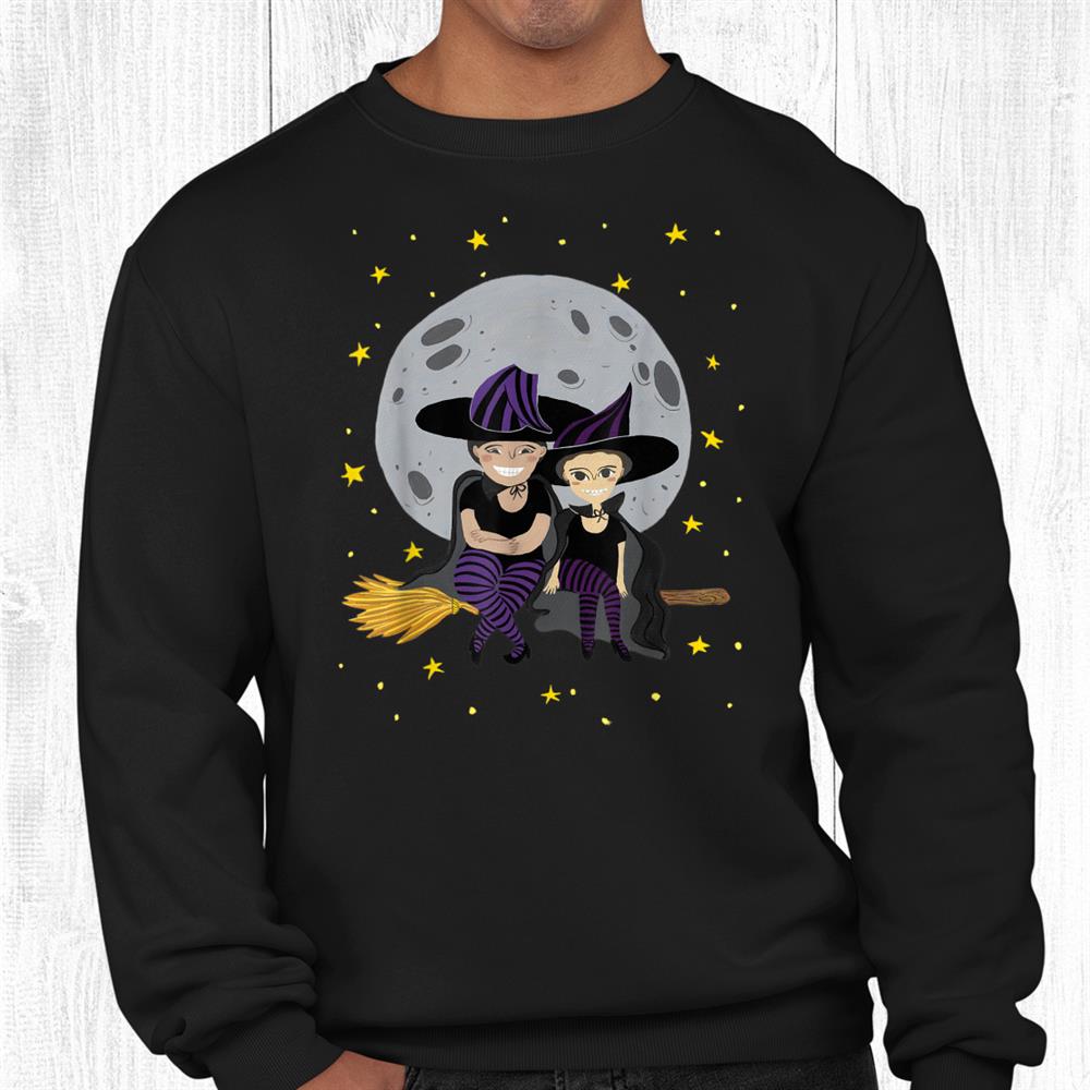 Halloween Witches Sisters Flying On A Broom Shirt, hoodie, sweatshirt, long sleeve and ladies T-shirt