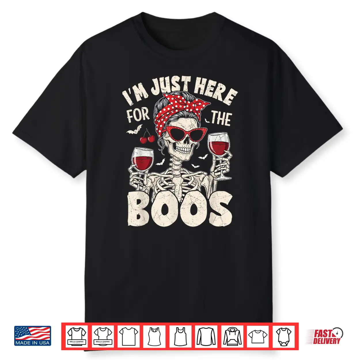 Halloween Women Funny I’M Just Here For The Boos Skeleton Shirt