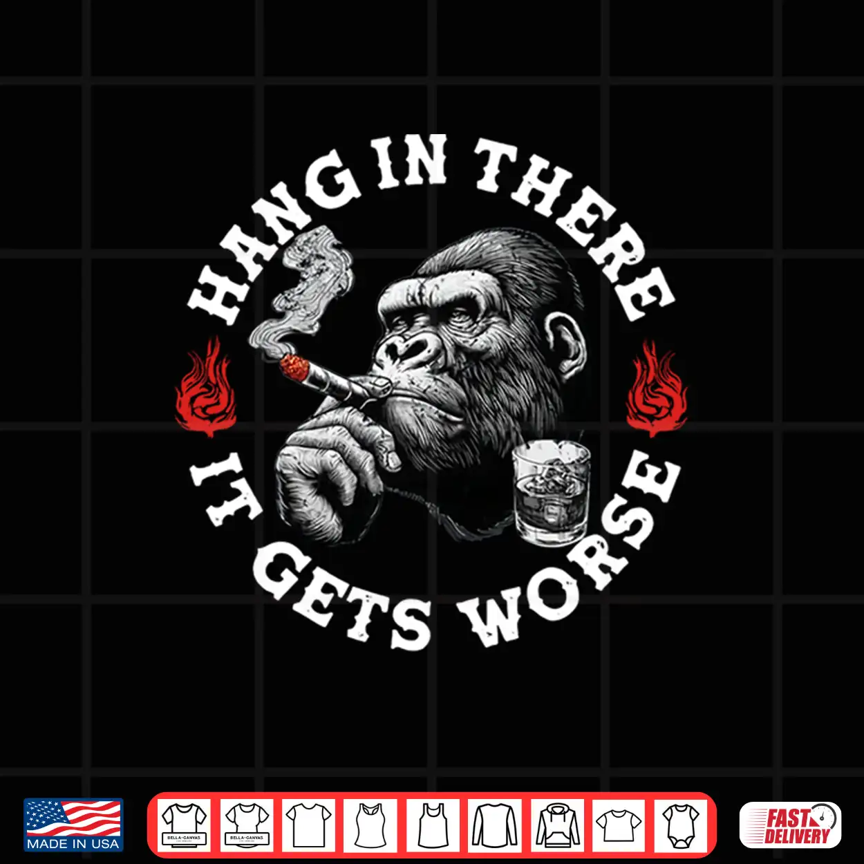 Hang In There It Gets Worse Sarcastic Monkey Humor Shirt