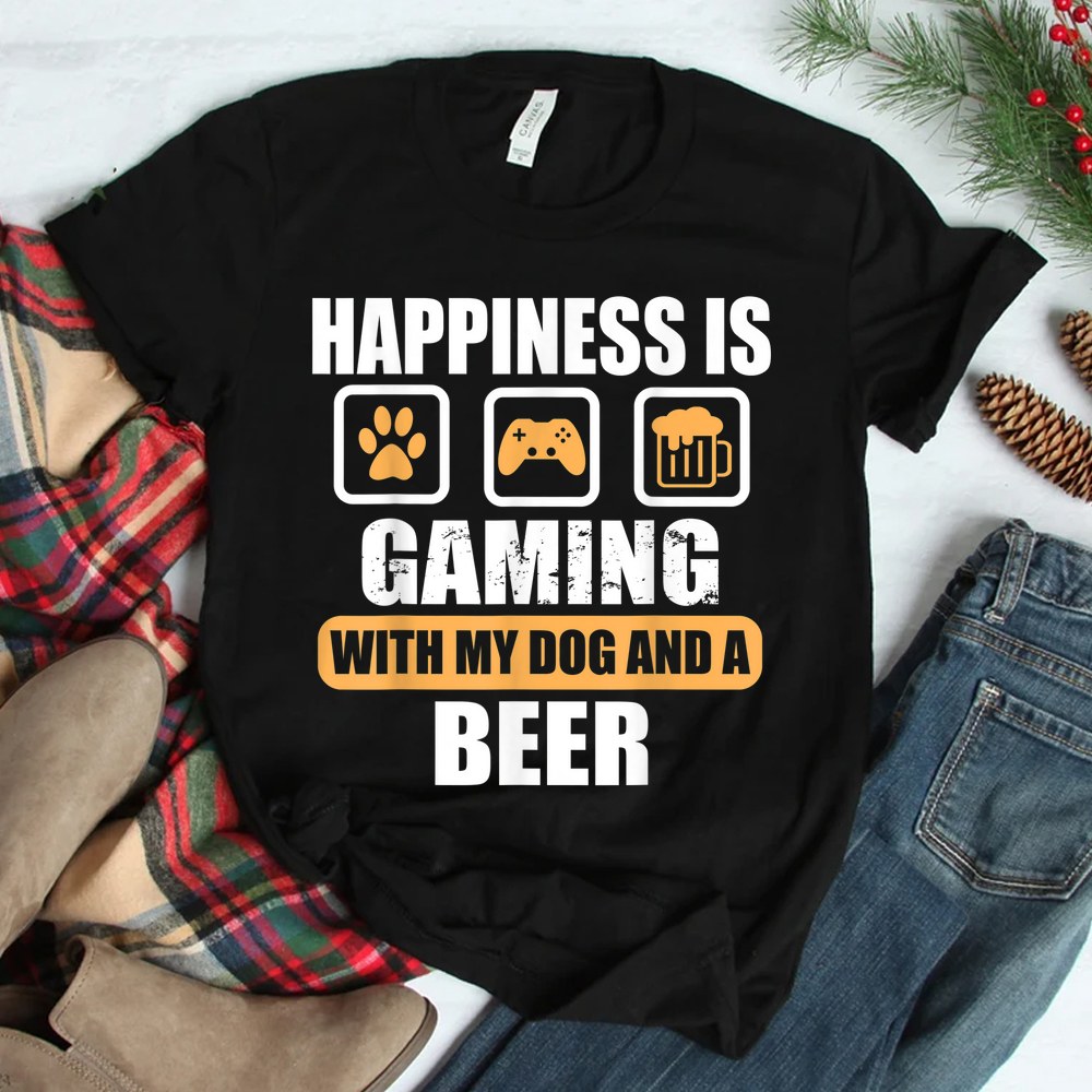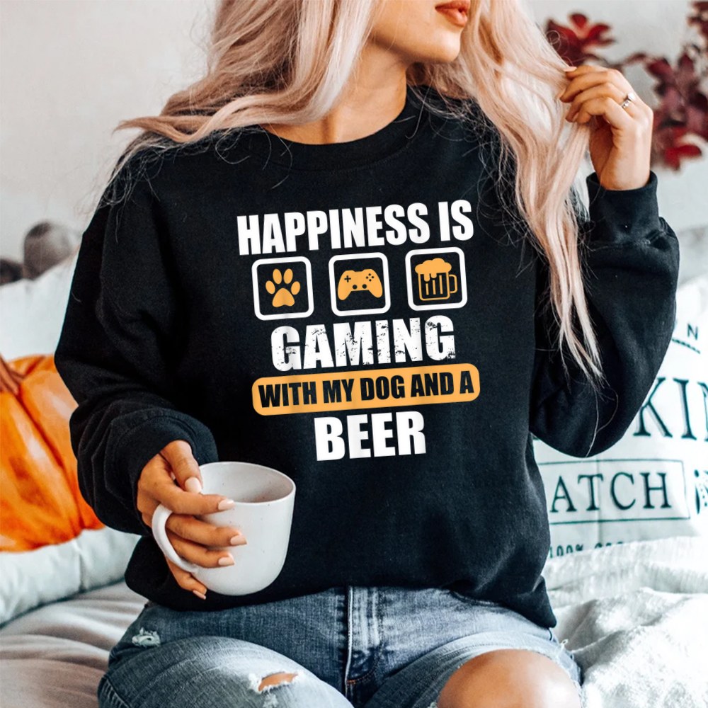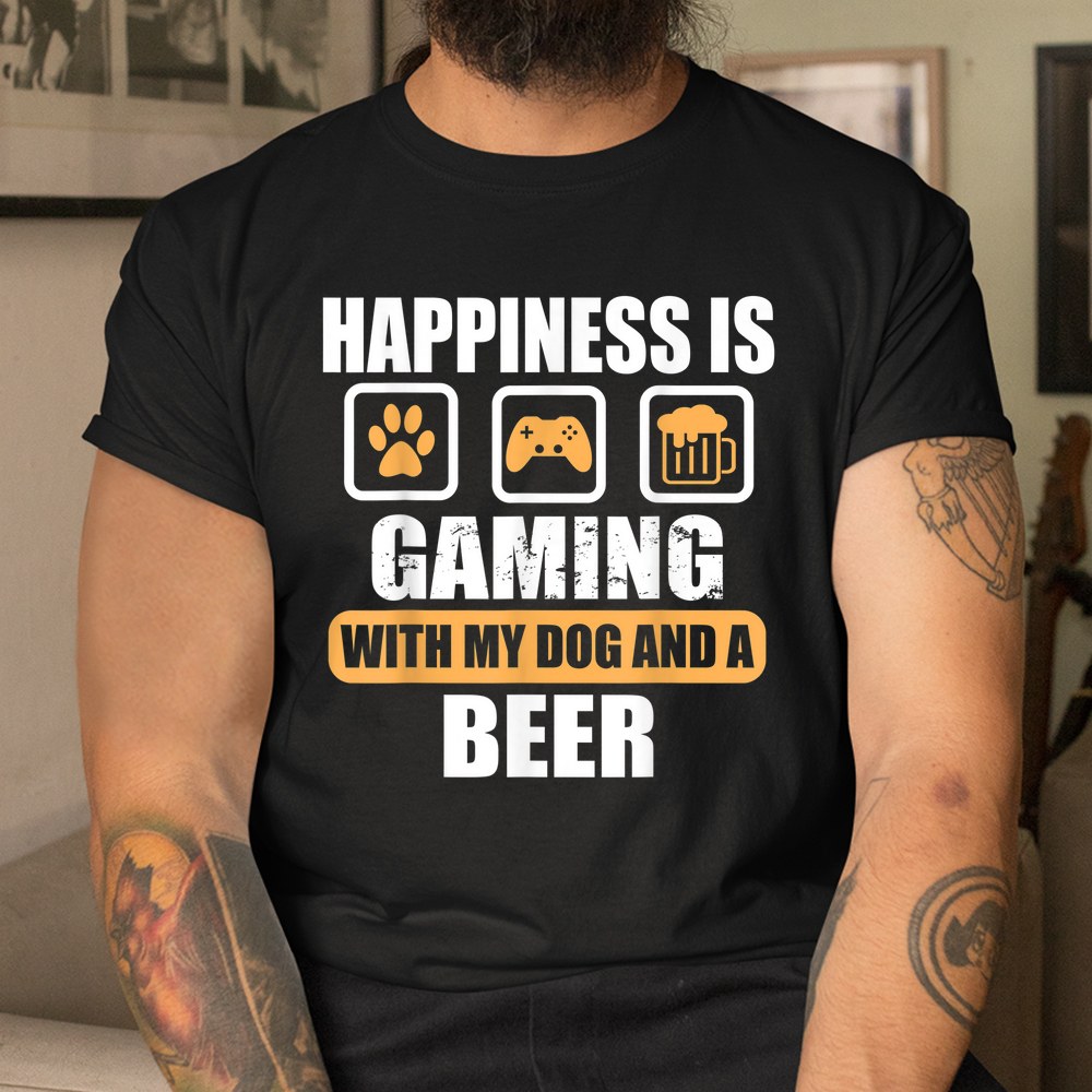 Happiness Is Gaming With My Dog And A Beer Shirt