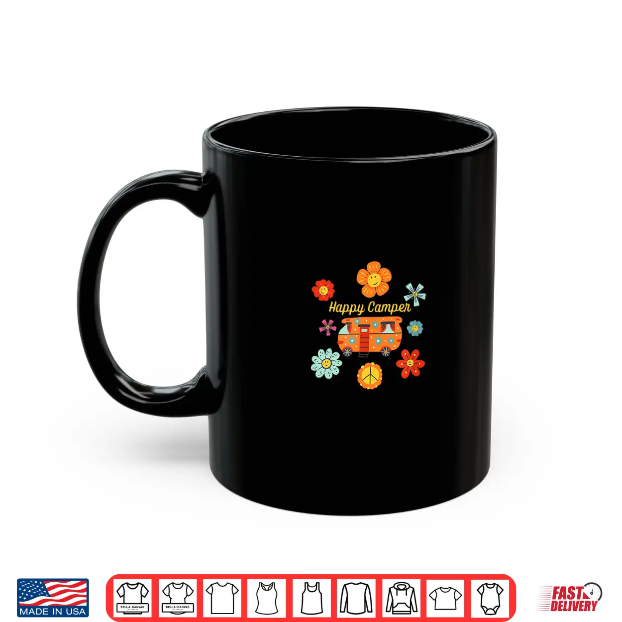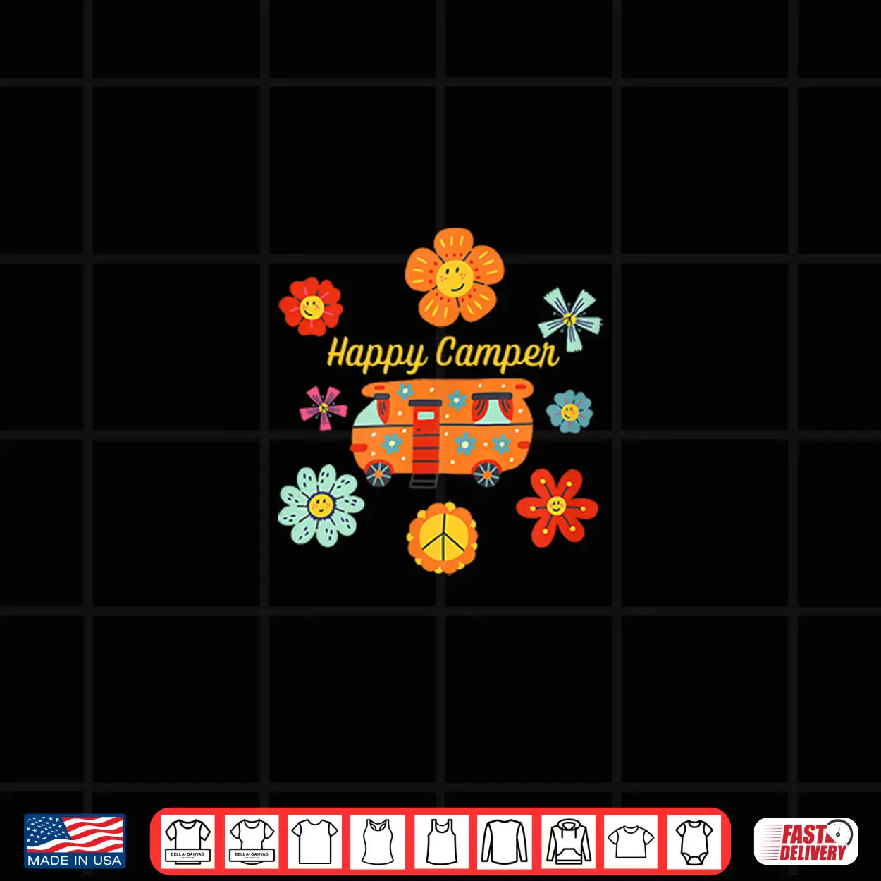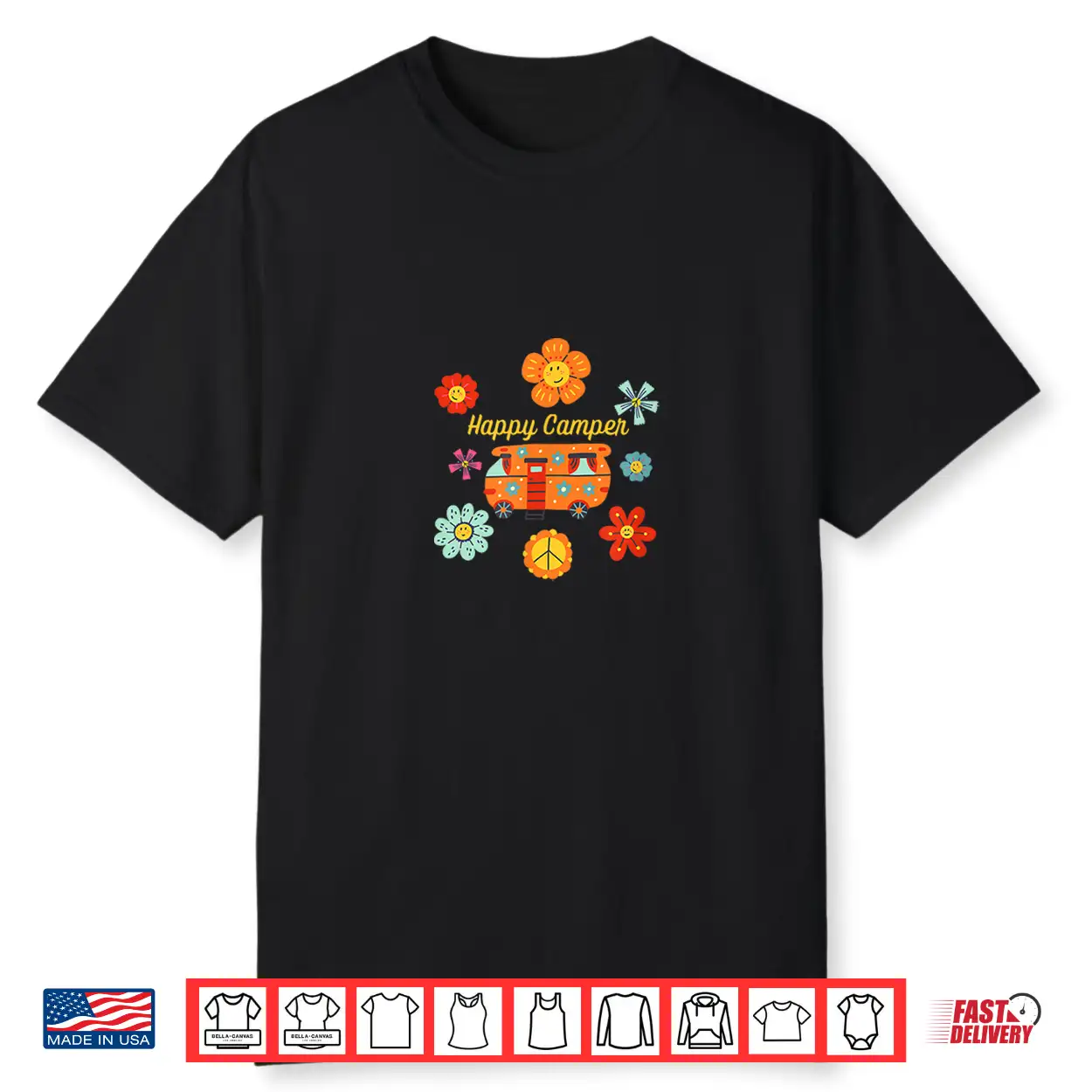 Happy Camper Vintage Hippie Boho Vibe Rv Van Camping Shirt