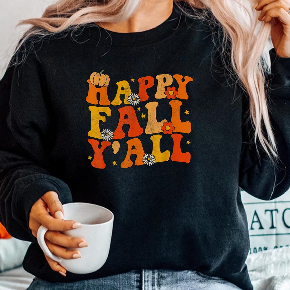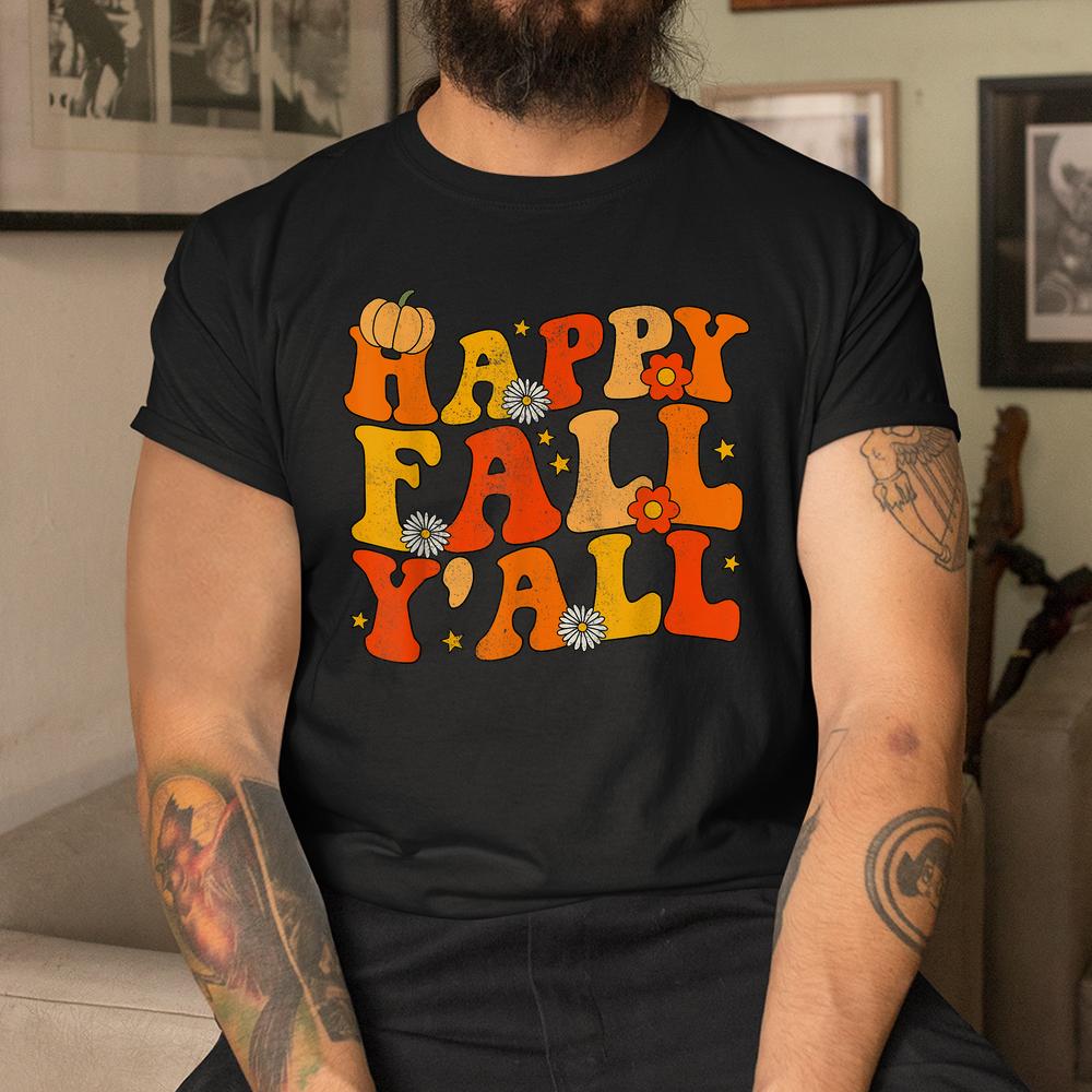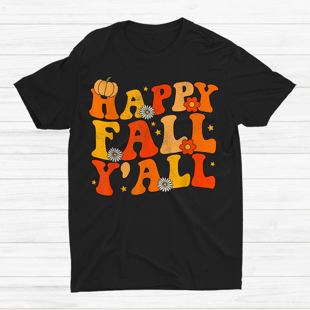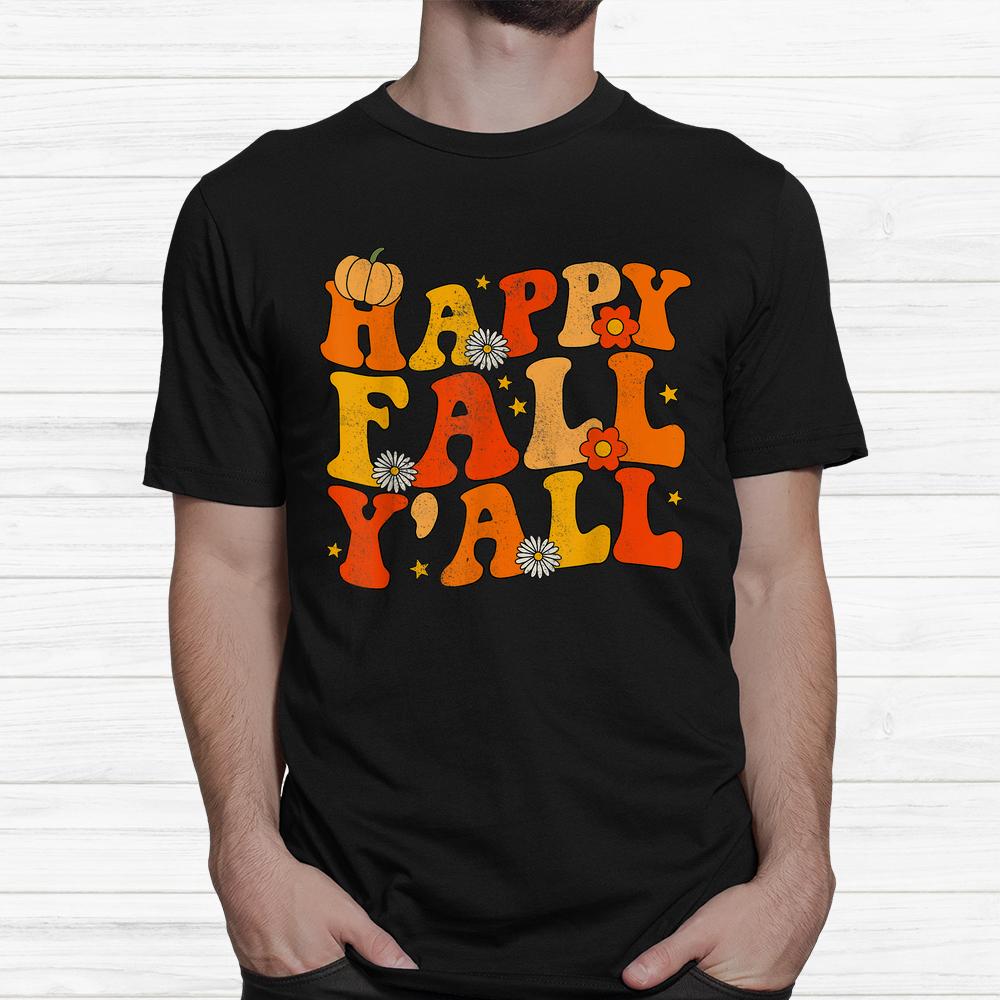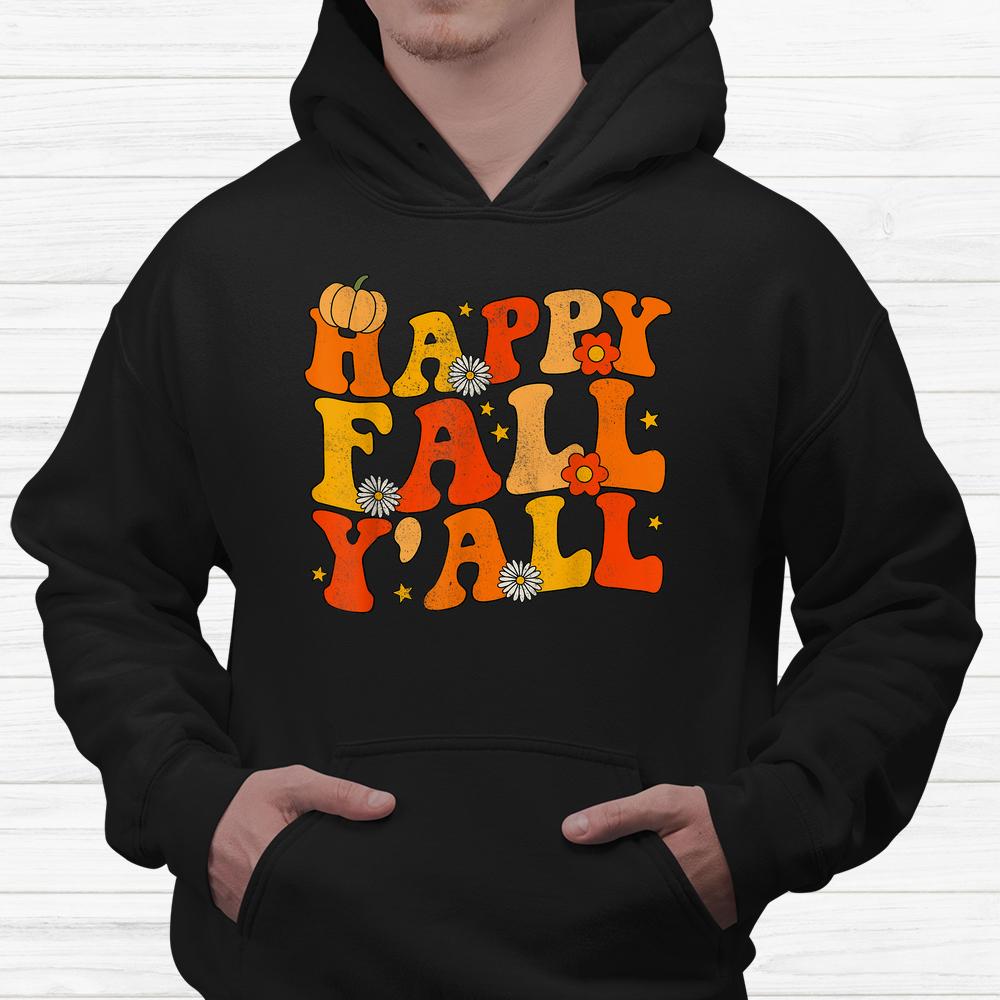Happy Fall Yall Squad Groovy Fall Autumn And Halloween Shirt, hoodie, sweatshirt, long sleeve and ladies T-shirt