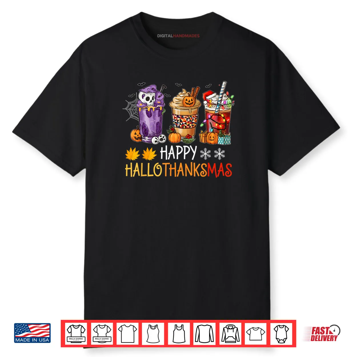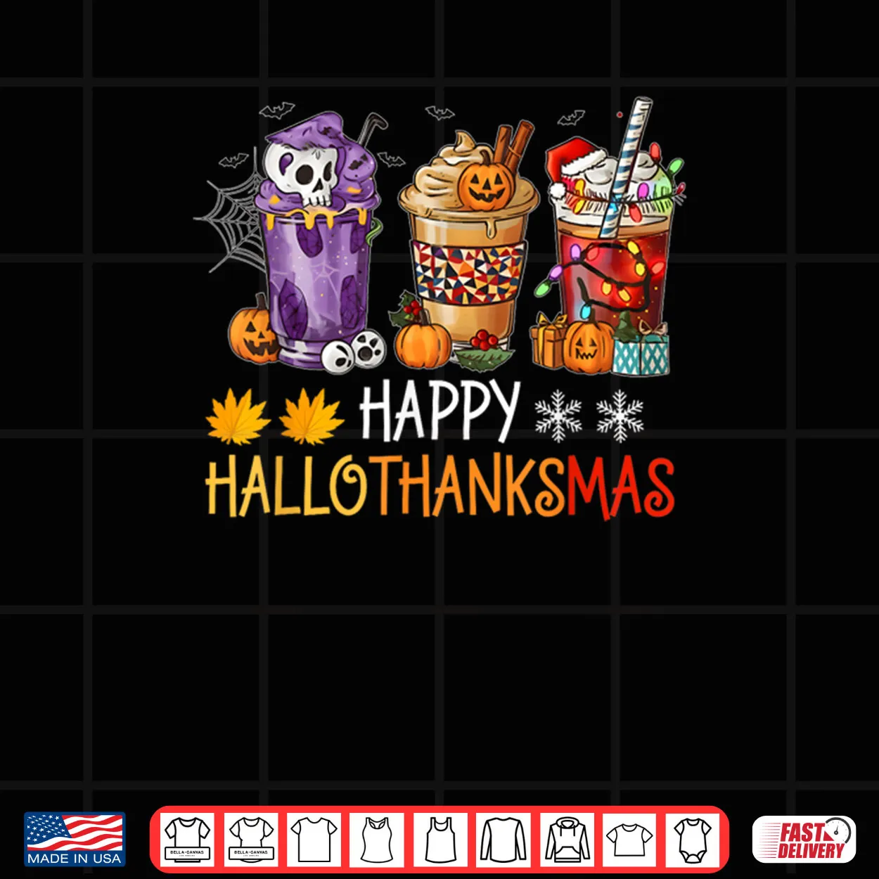 Happy Hallothanksmas Coffee Halloween Thanksgiving Christmas Shirt