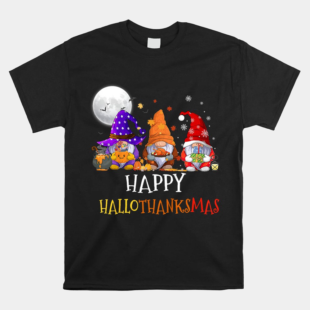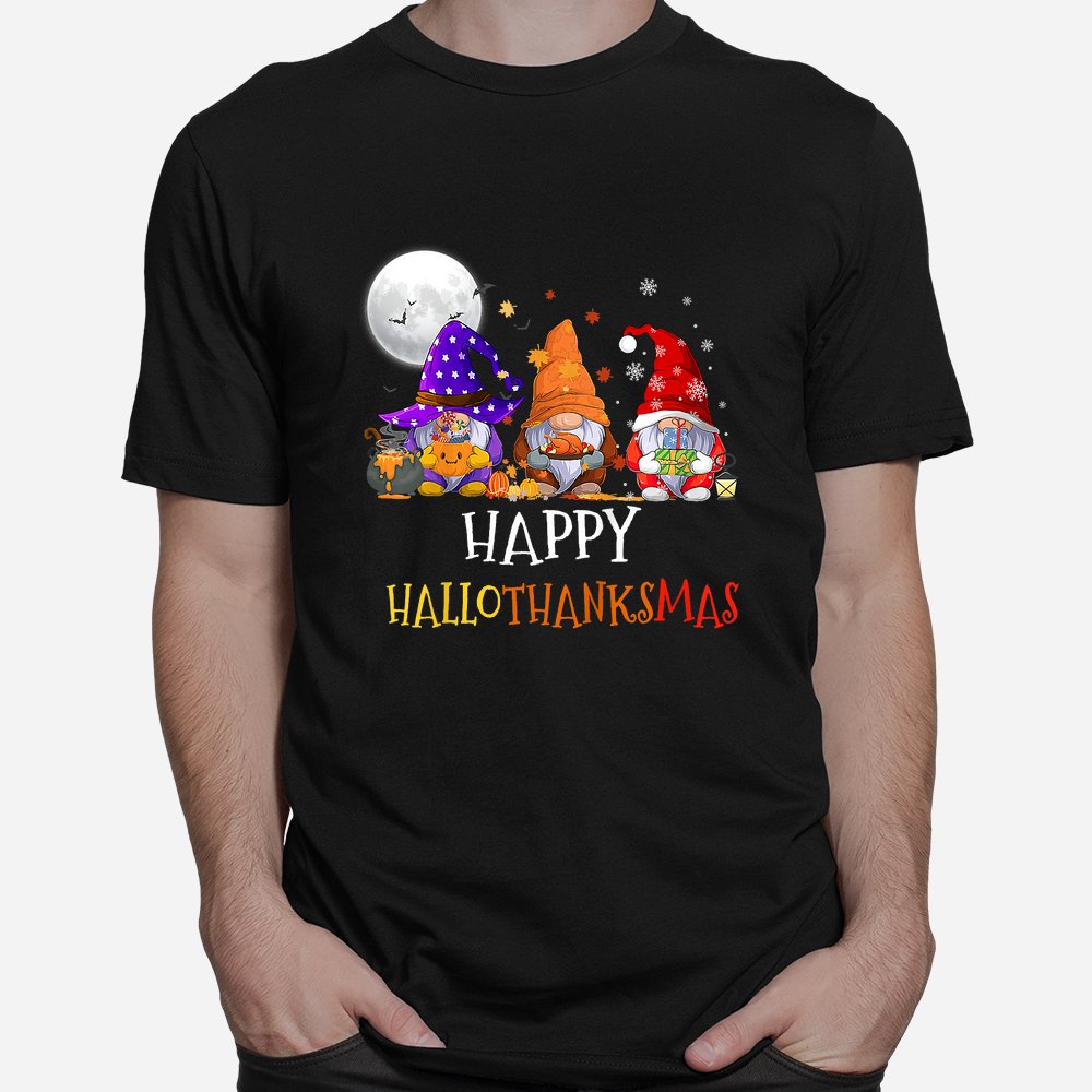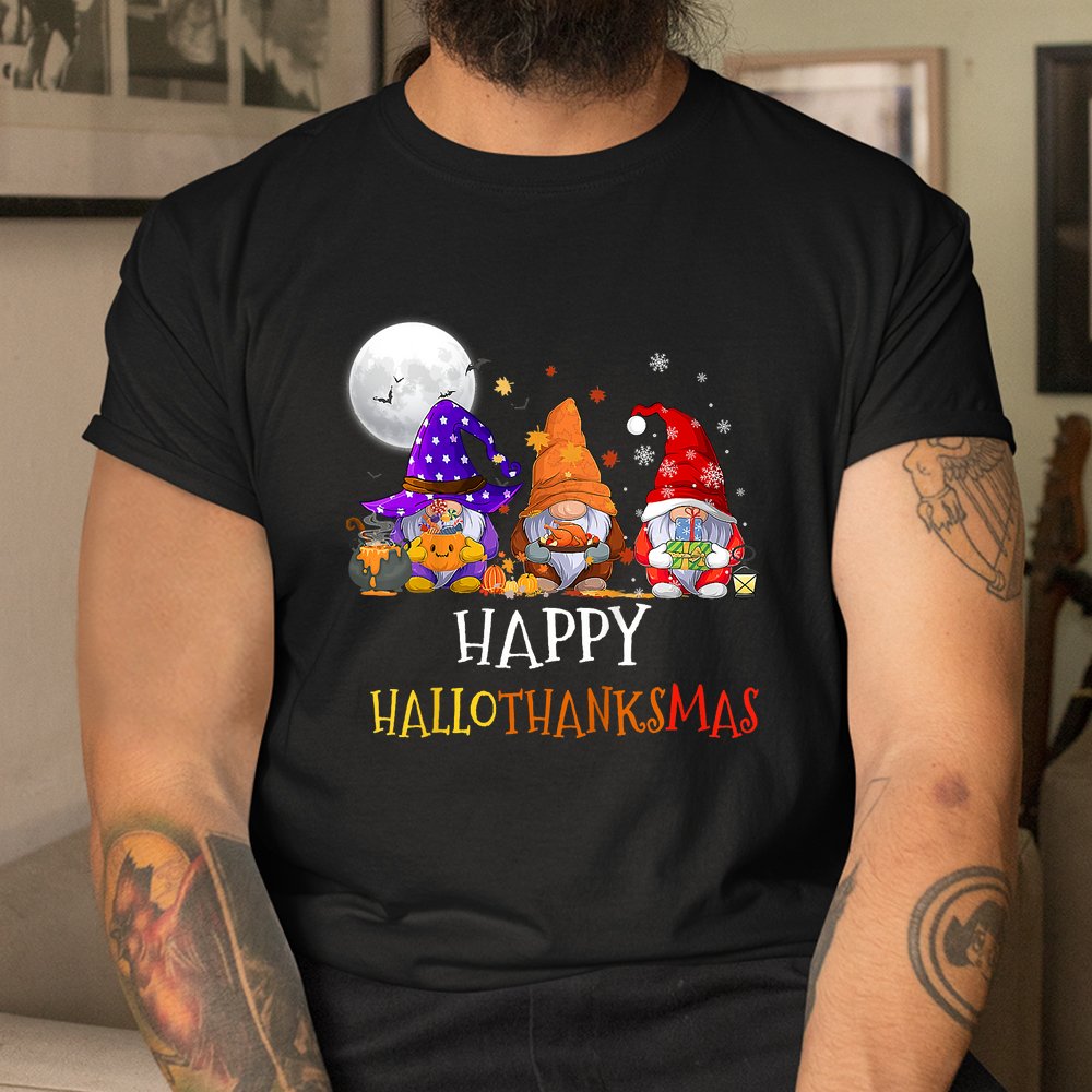 Happy Hallothanksmas Gnomes Halloween Christmas Thanksgiving Shirt, hoodie, sweatshirt, long sleeve and ladies T-shirt