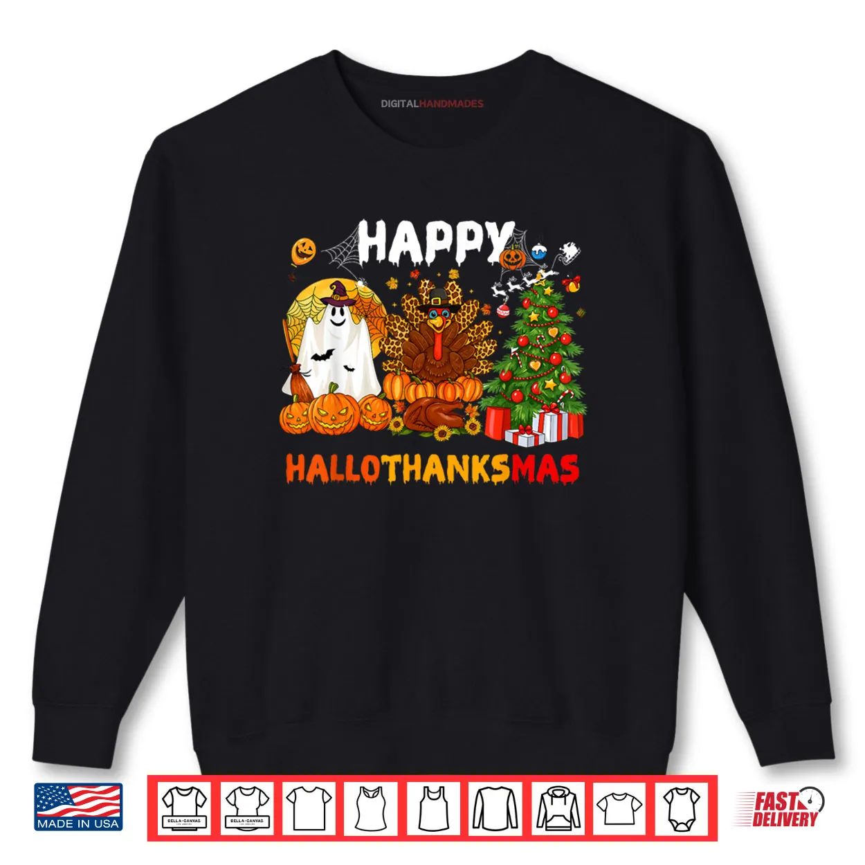 Happy Hallothanksmas Halloween Thanksgiving Christmas Shirt