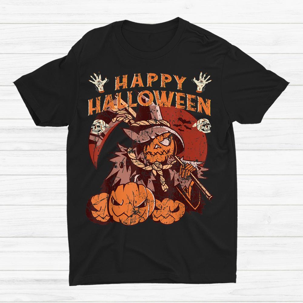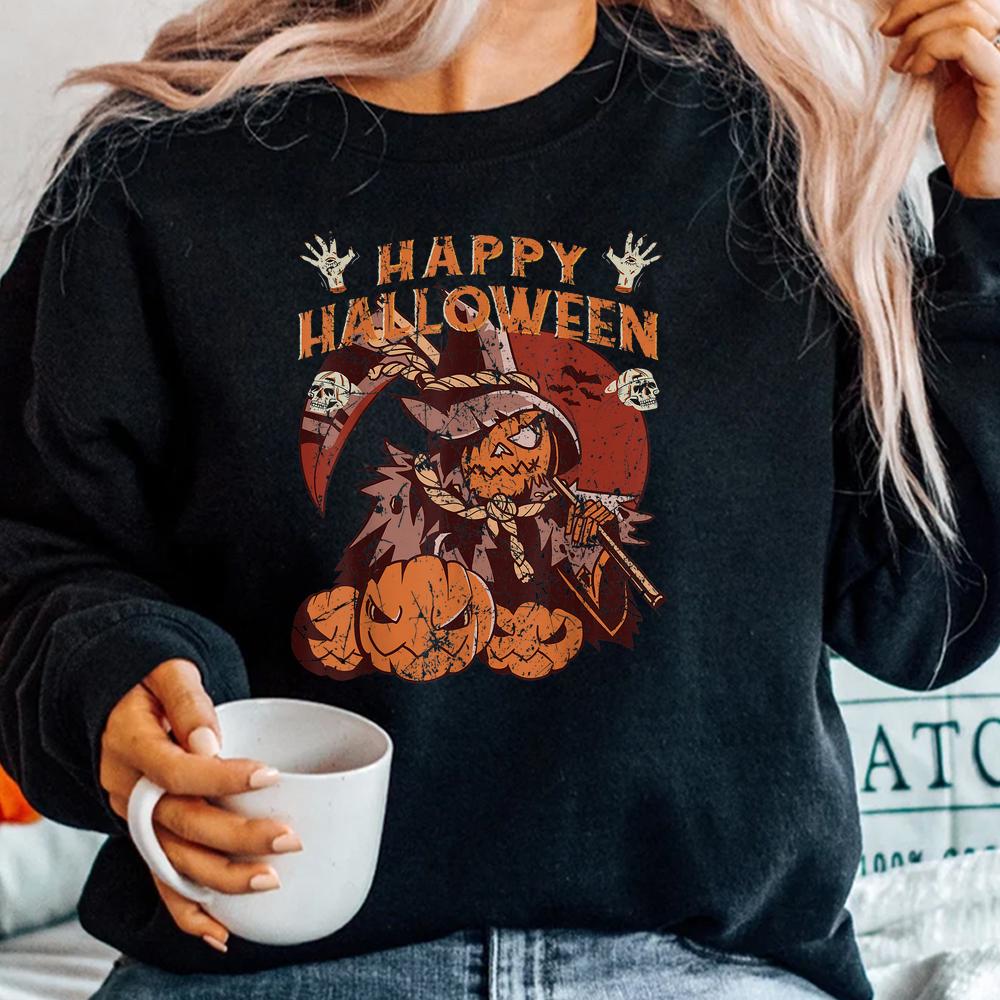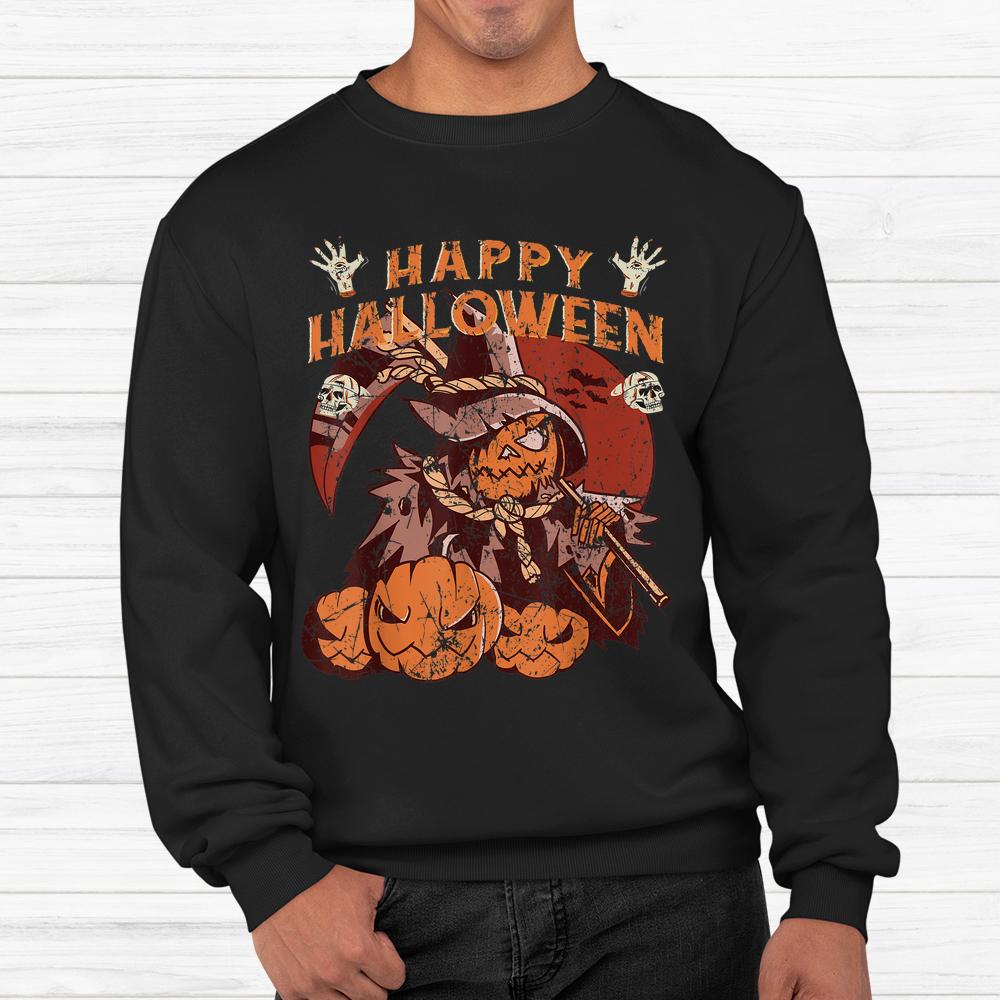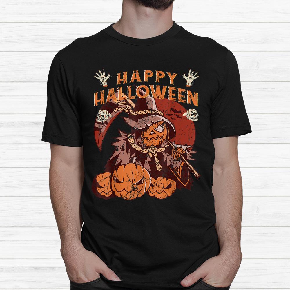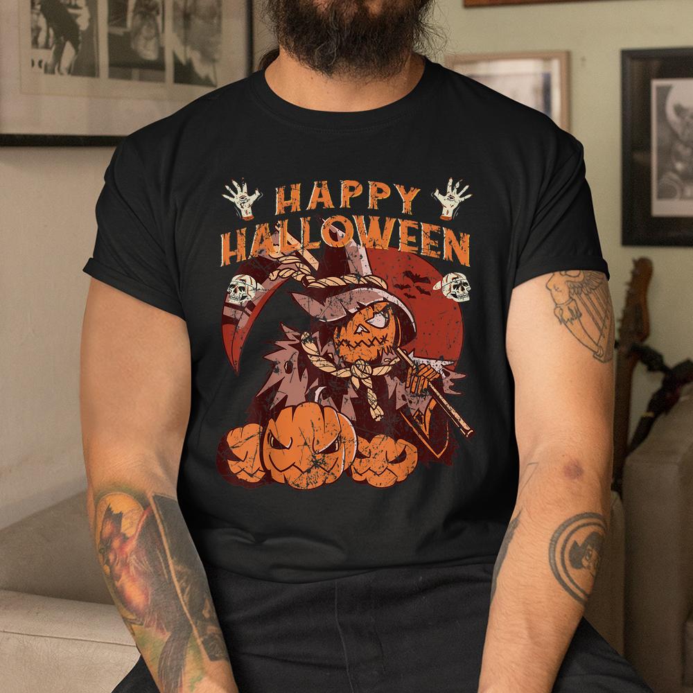 Happy Halloween Scarecrow Pumpkin Grim Reaper Shirt, hoodie, sweatshirt, long sleeve and ladies T-shirt