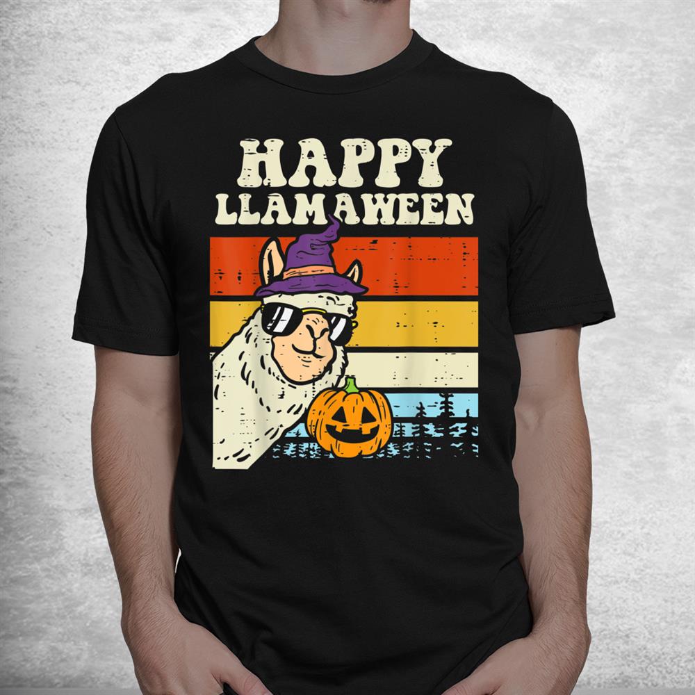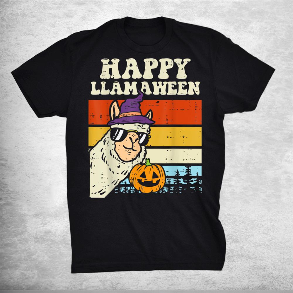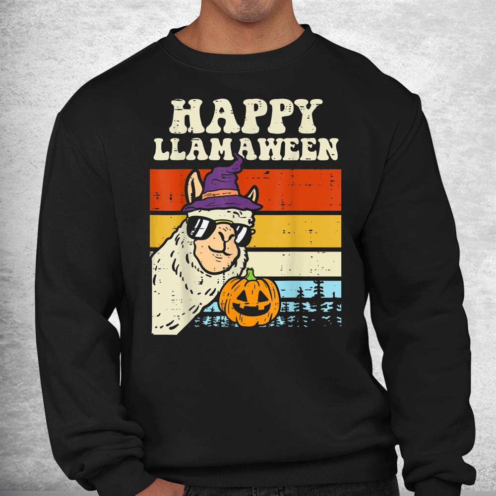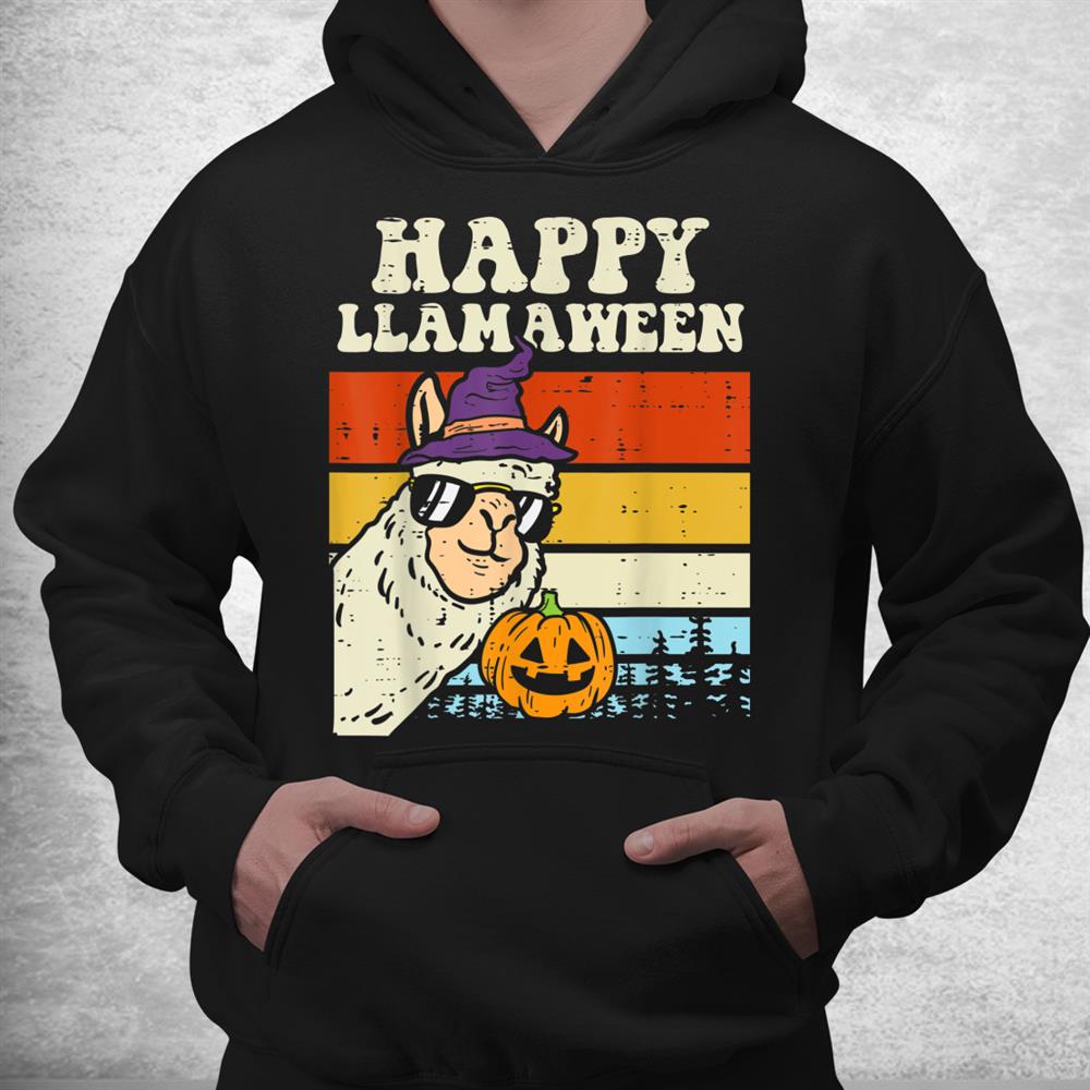 Happy Llamaween Llama Witch Retro Halloween Alpaca Animal Shirt, hoodie, sweatshirt, long sleeve and ladies T-shirt