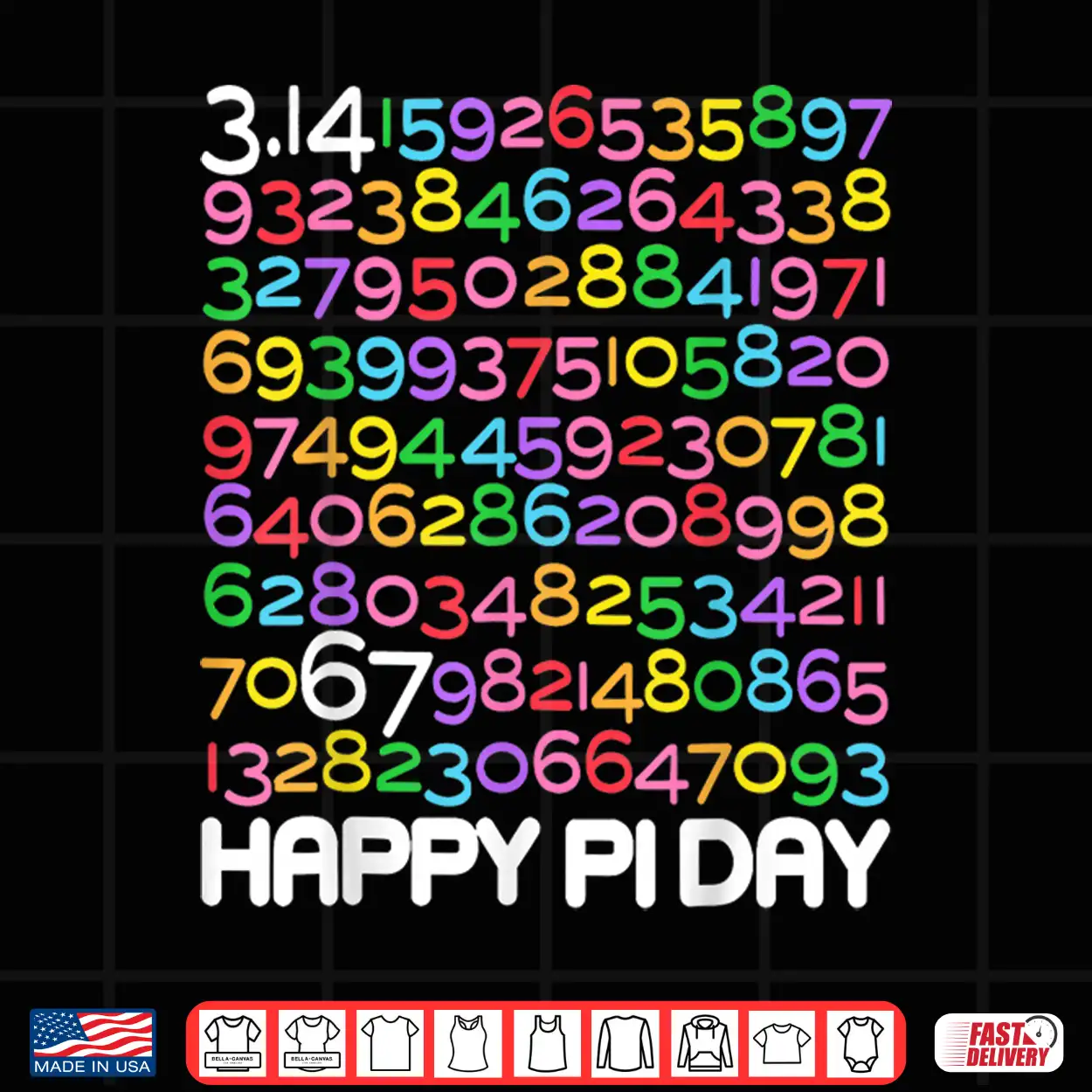 Happy Pi Day 3.14 Math Lover Pi 67 Math Teacher Kids Shirt