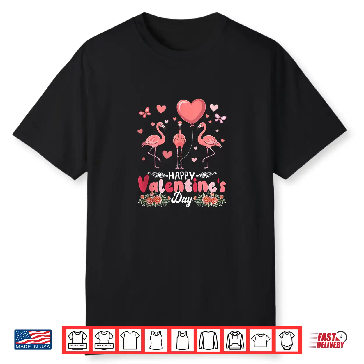 Happy Valentine’S Day Flowers Hearts Three Cute Flamingos Shirt
