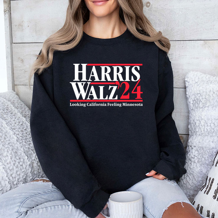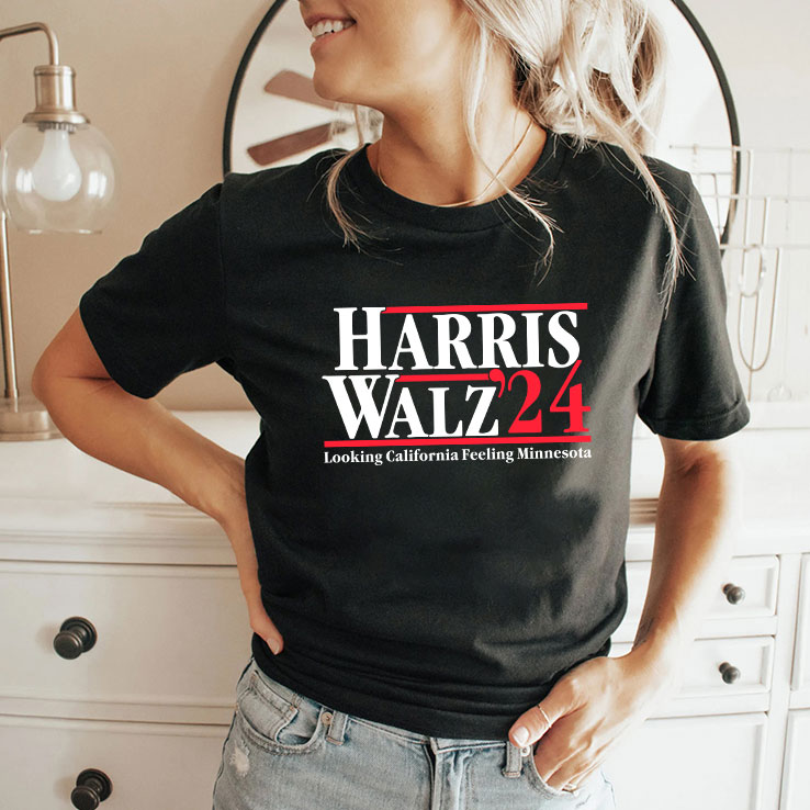 Have a look at the detailed information about Harris Walz 2024 Looking California Feeling Minnesota Shirt below!