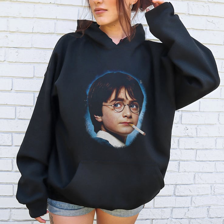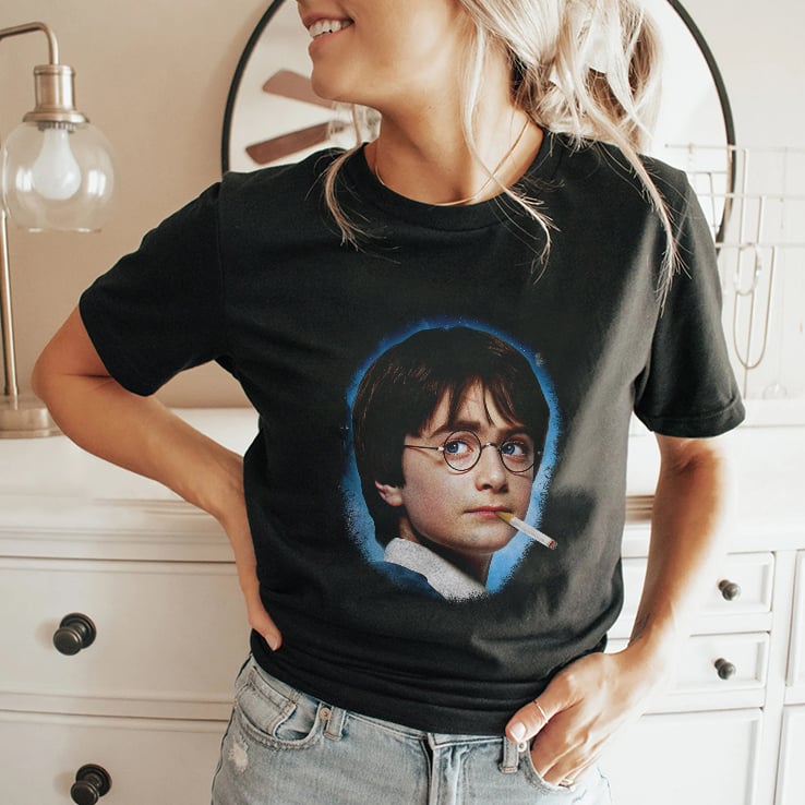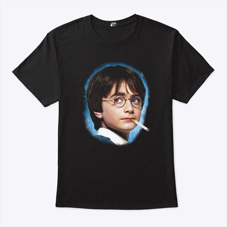 Harry Potter Smoking T Shirt appeals to those who enjoy satirical humor and enjoy twisting cultural symbols in unexpected ways. The shirt likely doesn’t carry a deep meaning related to the original Harry Potter story, but rather uses Harry’s image to create a humorous statement.