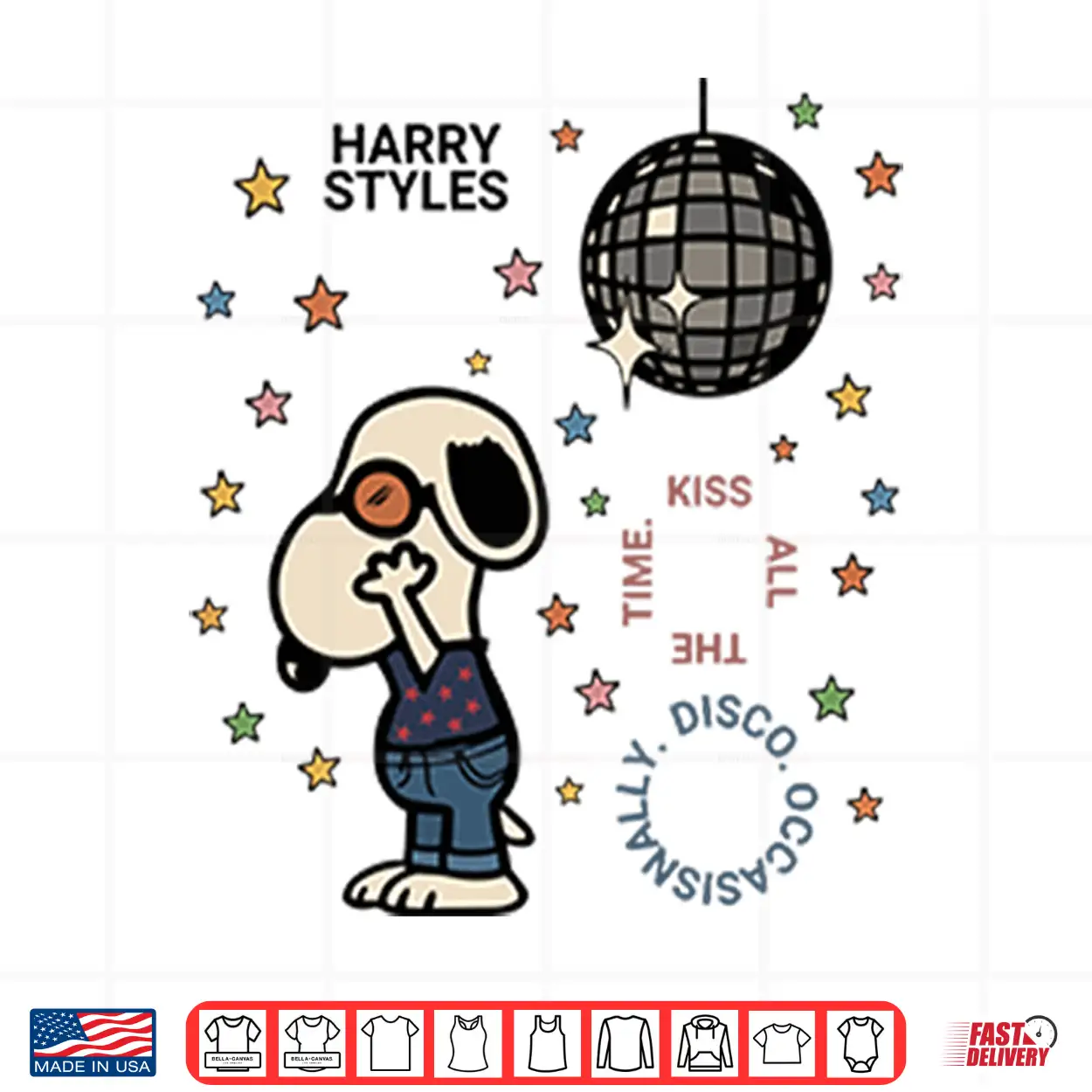 Harry Styles Snoopy Kiss All The Time Disco Ball Shirt