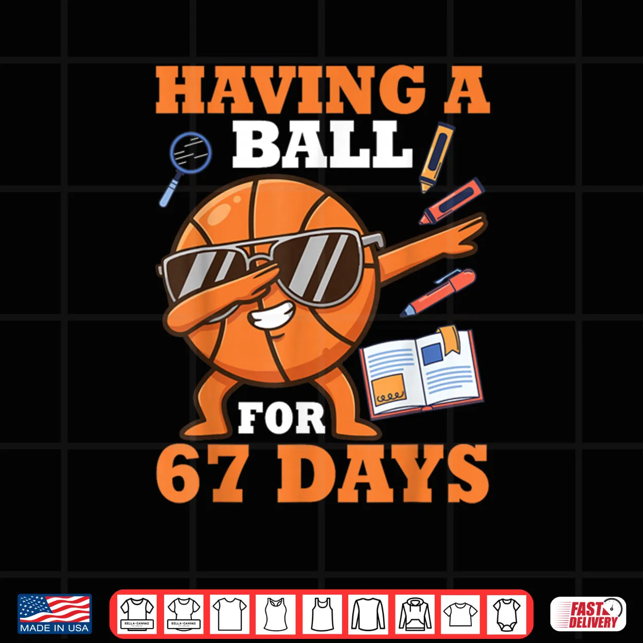 Having A Ball for 67 Days Dabbing Basketball Player Student Shirt, 67 Days of School, Dabbing, Basketball Player, Student, Funny, Sports Humor