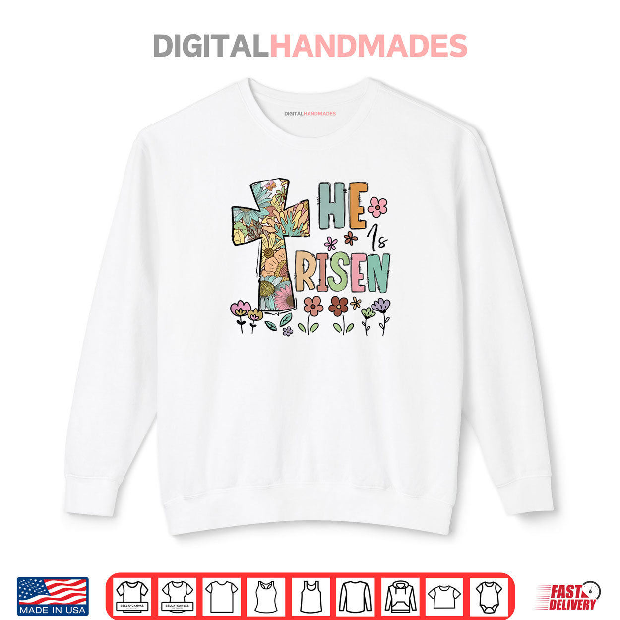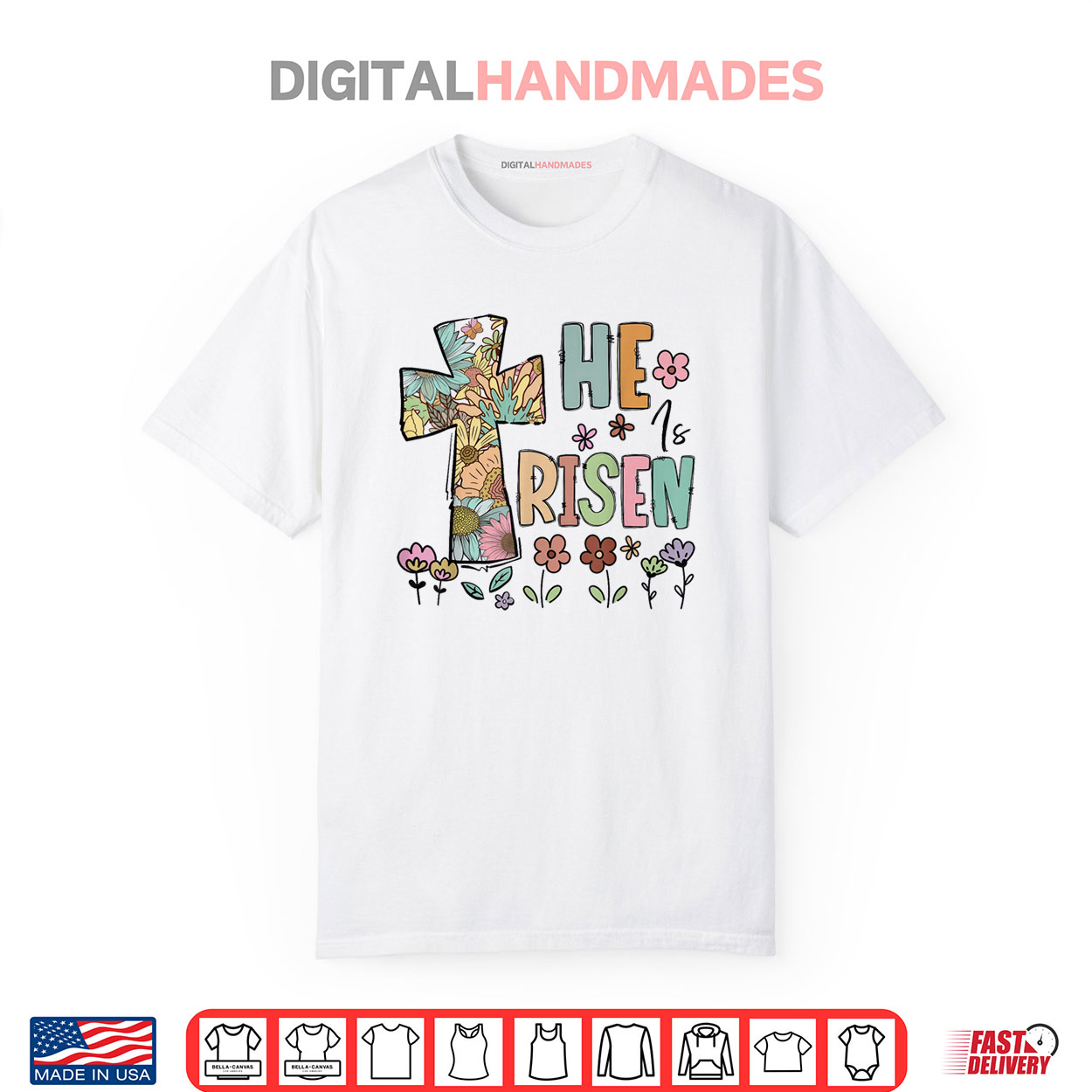He Is Risen Christian Easter Flowers Jesus Religious Shirt