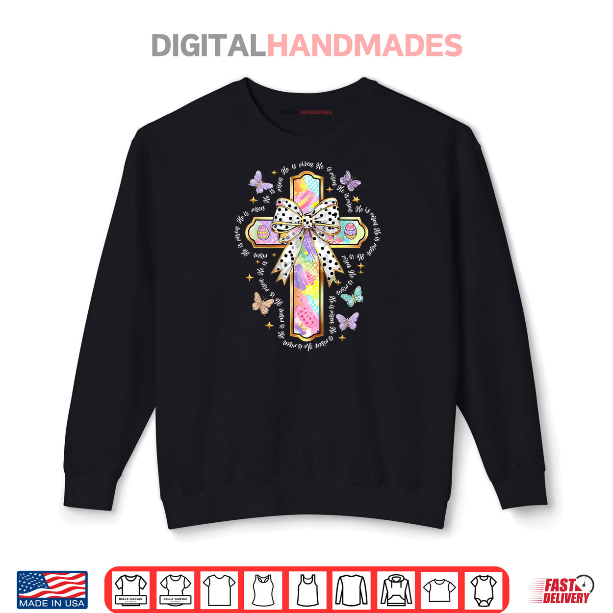 He Is Risen Easter Cross Coquette Jesus Christian Religious Shirt