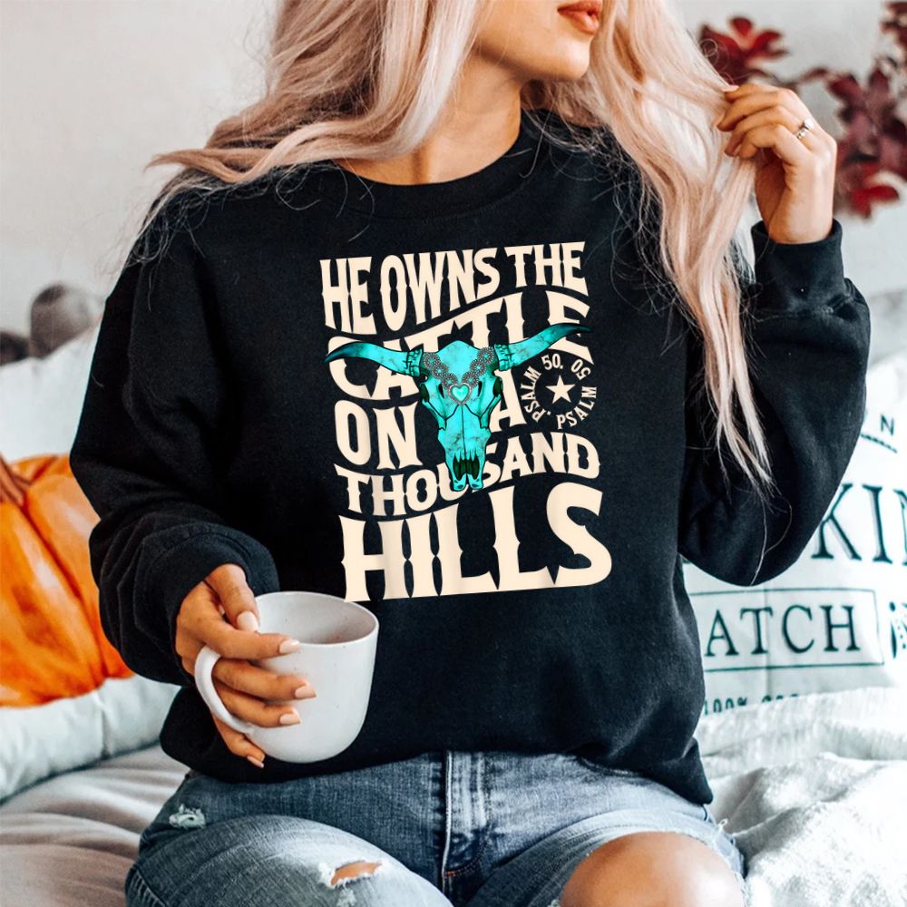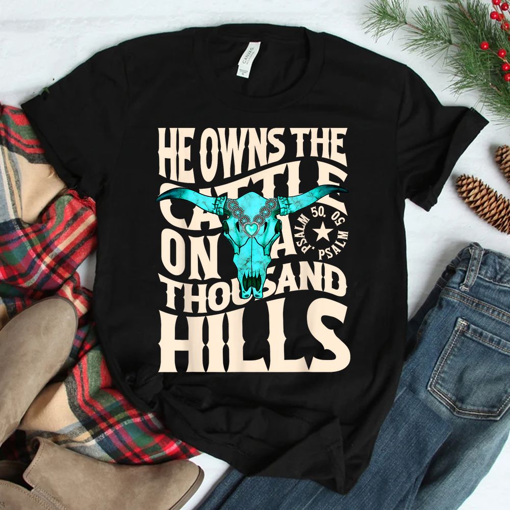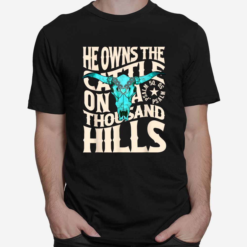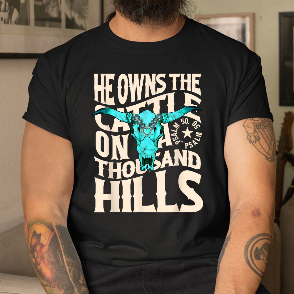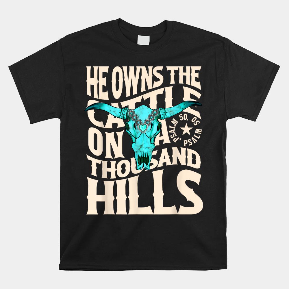 He Owns The Cattle On A Thousand Hills Western Skull Faith Shirt