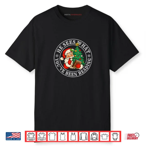 He Sees What You’ve Been Reading Bookish Christmas Shirt