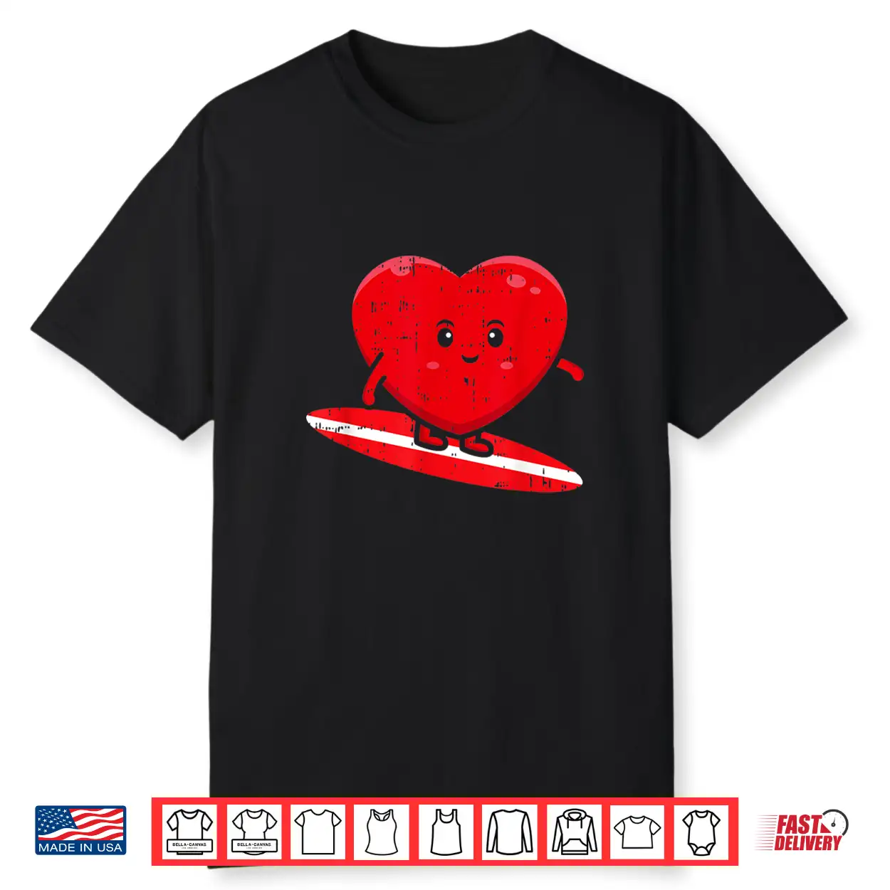 Heart Surfing Valentines Day Cute Surf Board Surfer Shirt