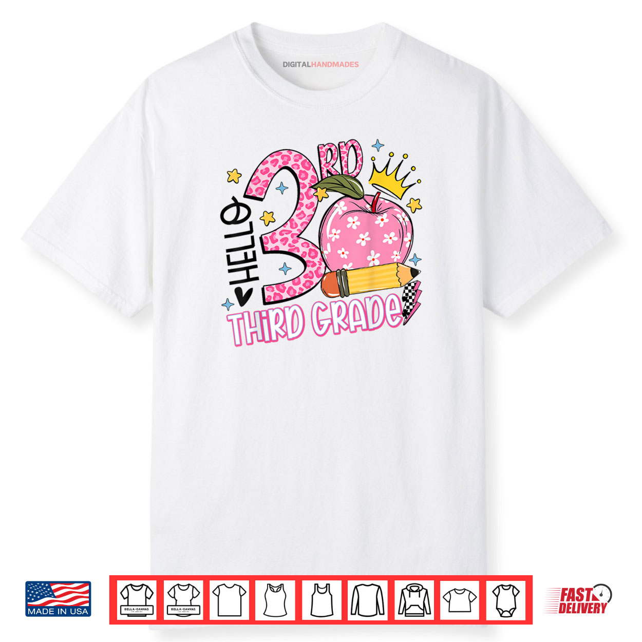 Hello 3rd Third Grade Back To School Pink Leopard Teacher Shirt, Hello Third Grade Pink Leopard Shirt, Back To School 3rd Grade Teacher Tee Shirt, Pink Leopard Print Educator Style Shirt, Cute Teacher Team Apparel Gift Fun Shirt, Girly School Supplies Fashion Trend Shirt, First Day Of Third Grade Teacher Shirt, Leopard Aesthetic Classroom Life Shirt, Pretty Pink And Leopard Design Shirt, Welcoming 3rd Grade Teacher Team Shirt