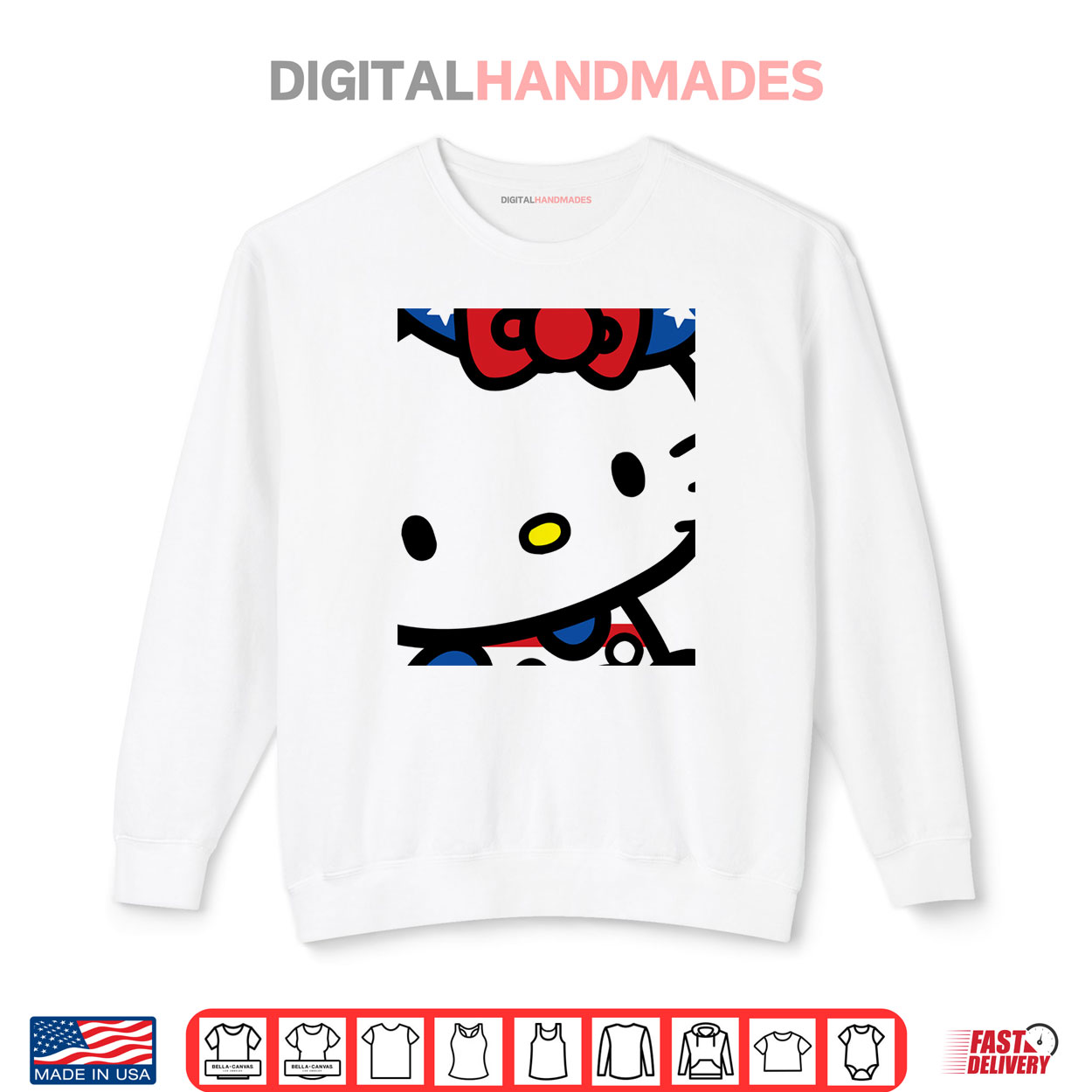Hello Kitty American 4th of July Shirt, Hello Kitty July 4th American Tee Shirt, Sanrio Patriotic Holiday Top Shirt, Cute Cat USA Flag Graphic Wear Shirt, Fourth Of July Hello Kitty Fan Fun Shirt, Red White Blue Kawaii Character Style Shirt, American Pride Little Twin Stars Proud Shirt, Summer Holiday Sanrio Magic Fan Shirt, Adorable Kitty Americana Lady Shirt, All American Hello Kitty Chic Shirt
