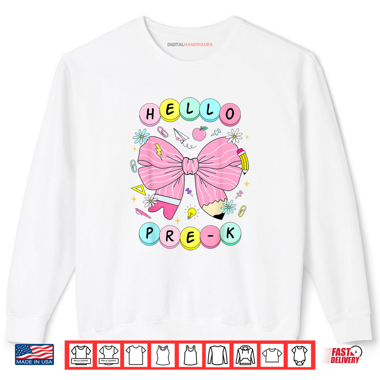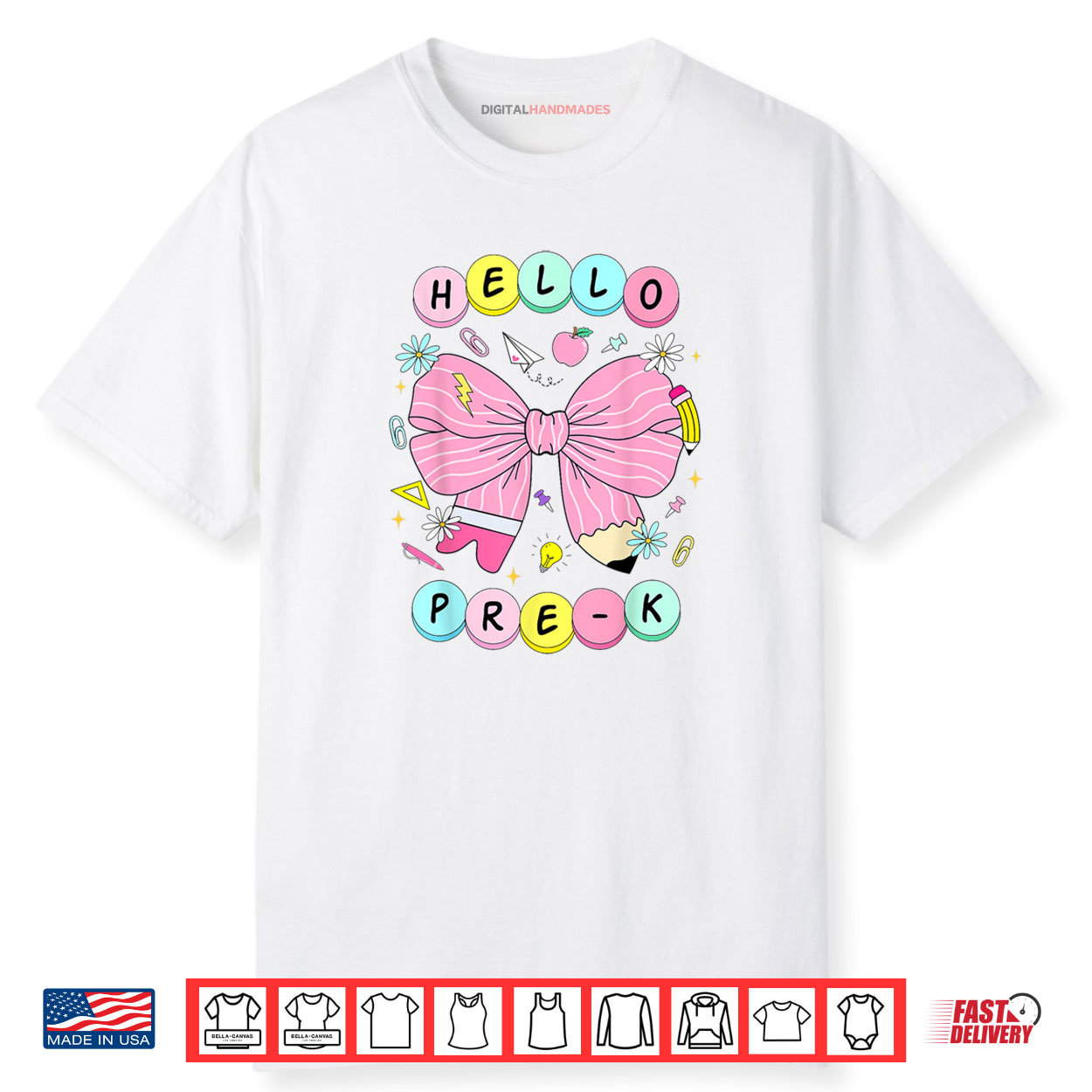 Hello Pre K Teacher Coquette Bow Pre K Back To School Girls Shirt, Hello Pre K Teacher Shirt, Coquette Bow Shirt, Pre K Back To School Shirt, Girls Shirt, Pre K Teacher Shirt, Coquette Style Shirt, Back To School Shirt, Preschool Teacher Shirt, Girls School Shirt
