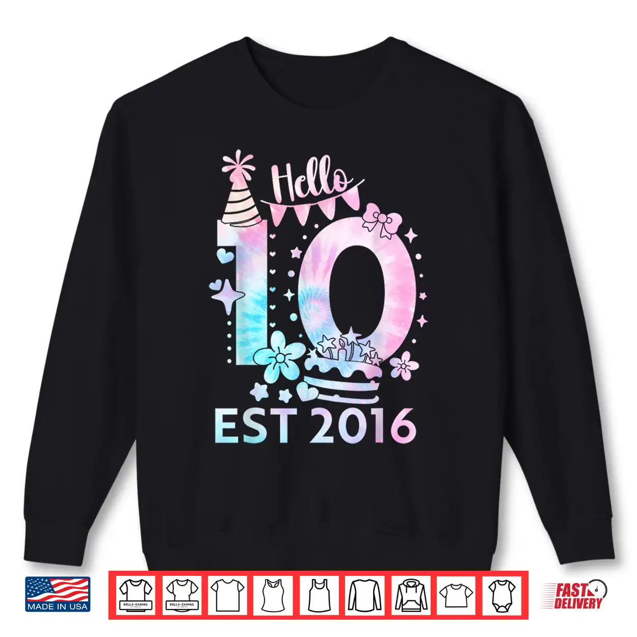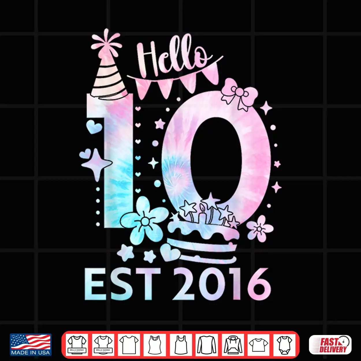 Hello Ten 2016 Cute 10Th Birthday Tie Dye 10 Year Girl Boy Shirt