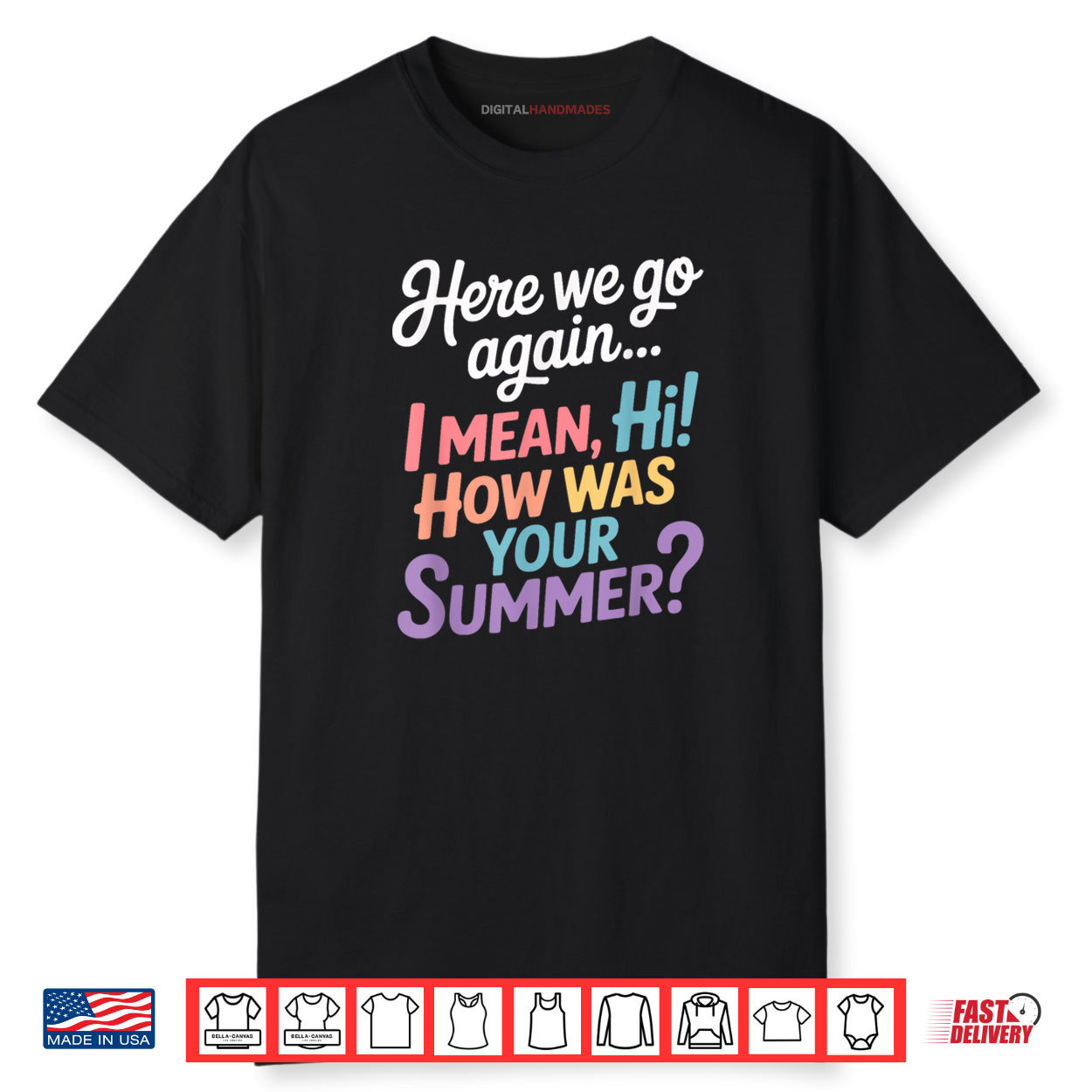 Here We Go Again I Mean Hi How Was Your Summer Teacher Shirt, Here We Go Again Shirt, I Mean Hi How Was Your Summer Shirt, Teacher Back To School Shirt, Funny Teacher Shirt, School Humor Shirt