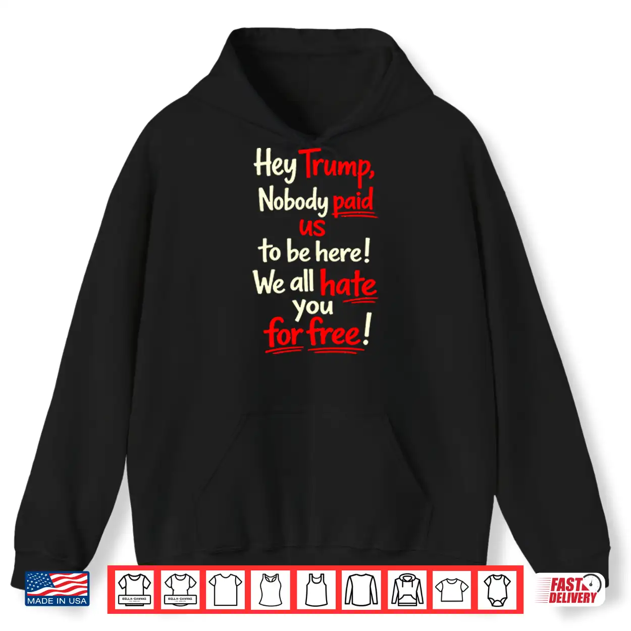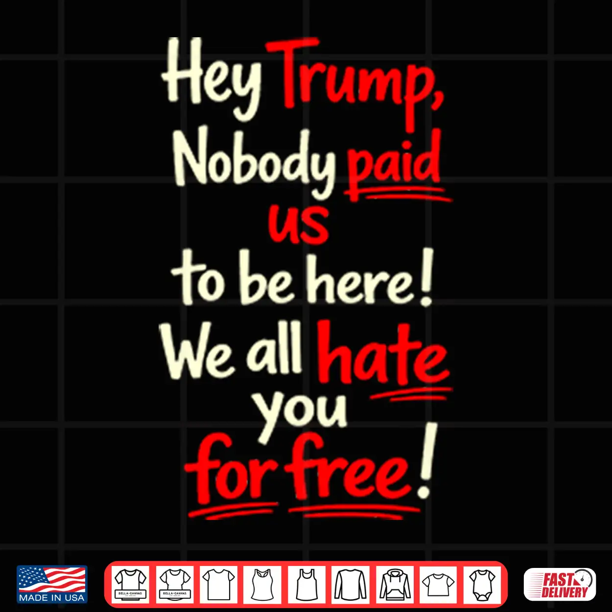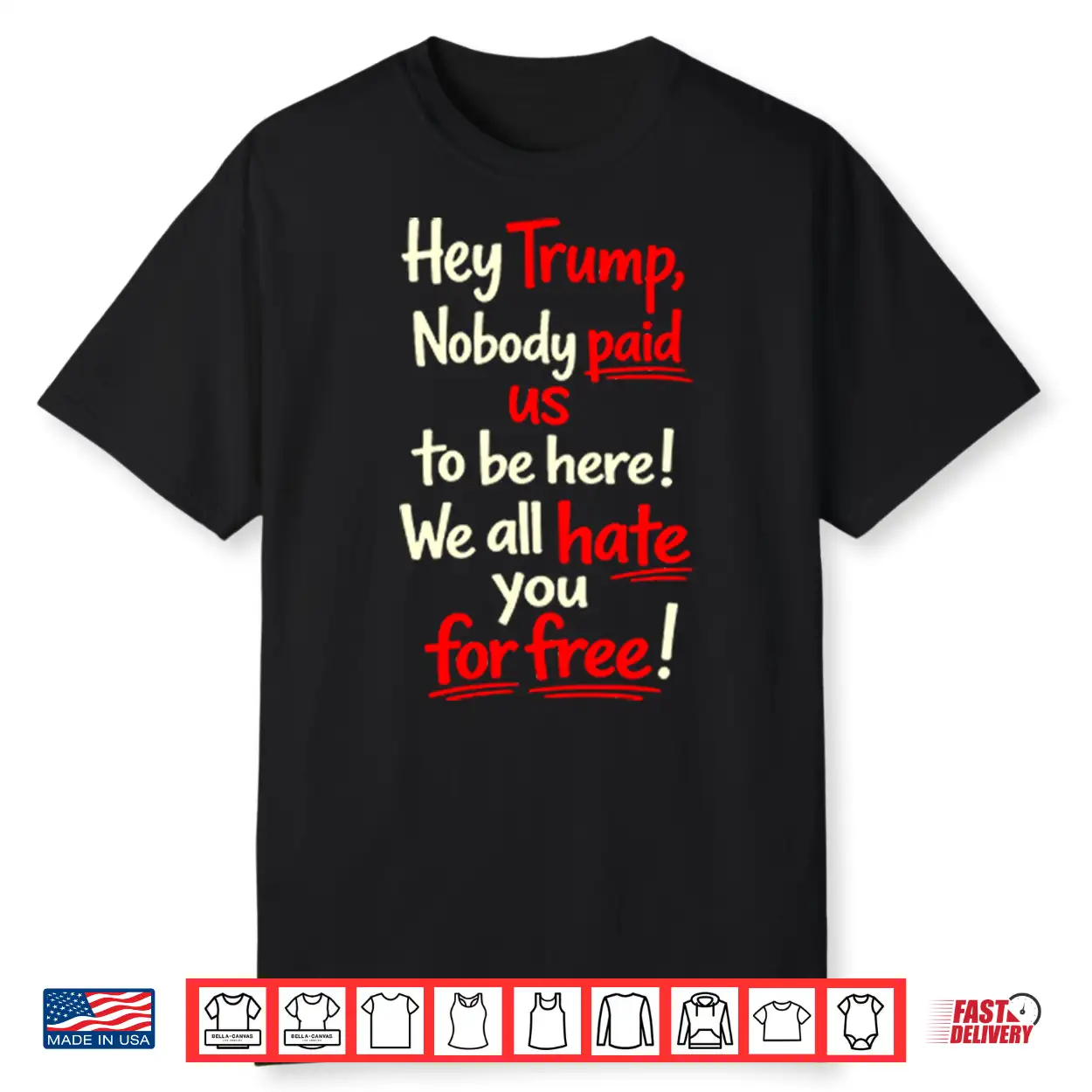 Hey Trump Nobody Paid Us To Be Here We All Hate You For Free Shirt