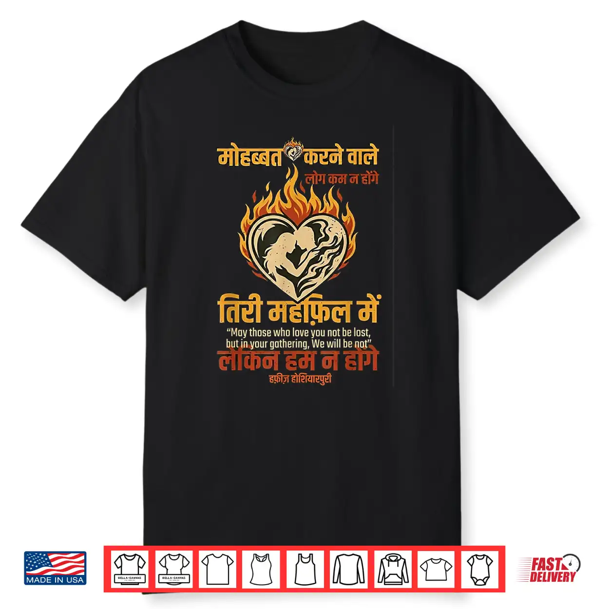 Hindi Poetry Aesthetic Heart And Fire Soulful Art Shirt