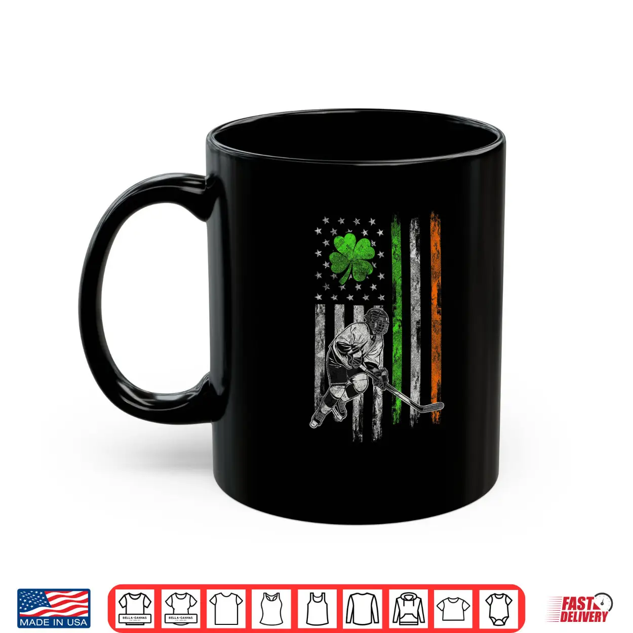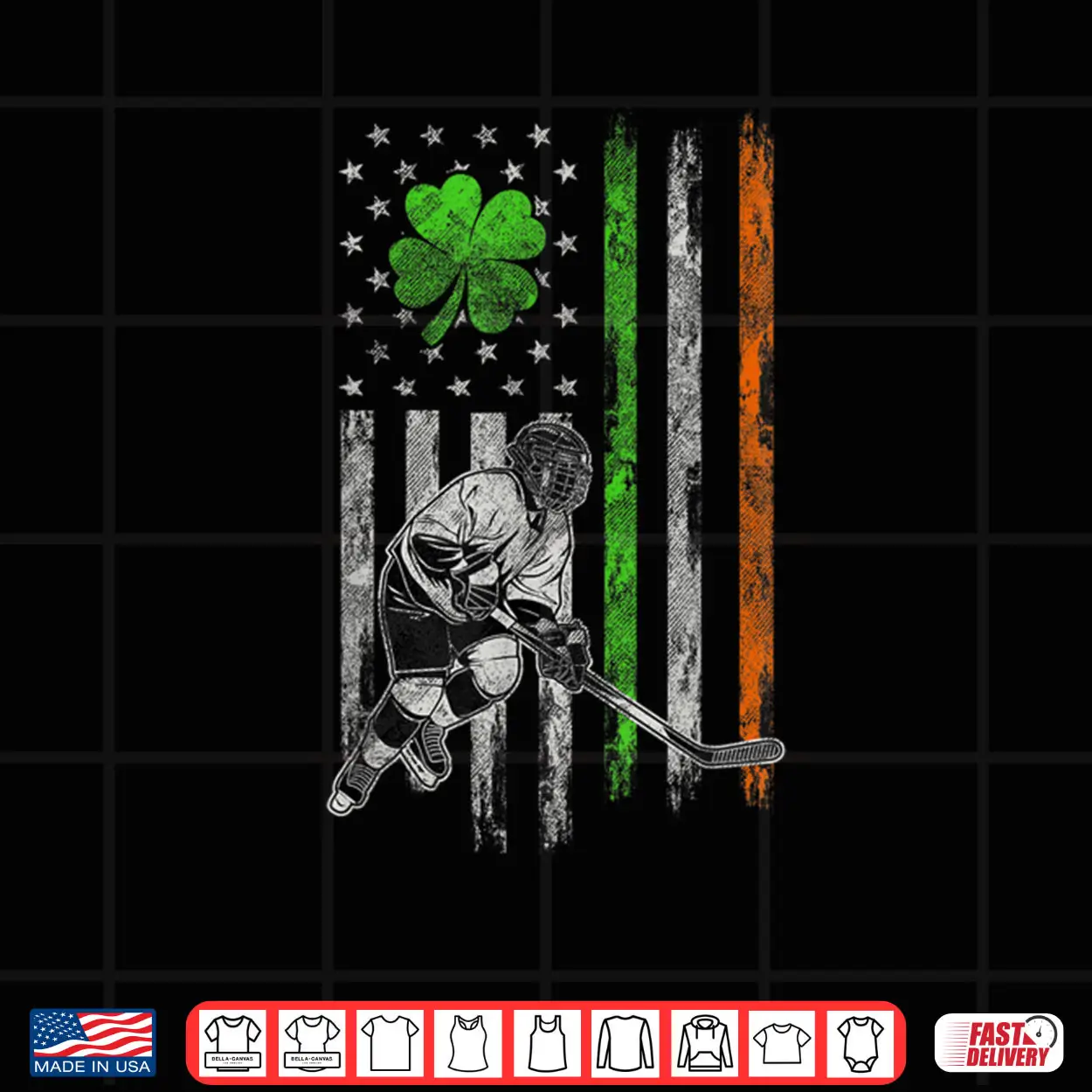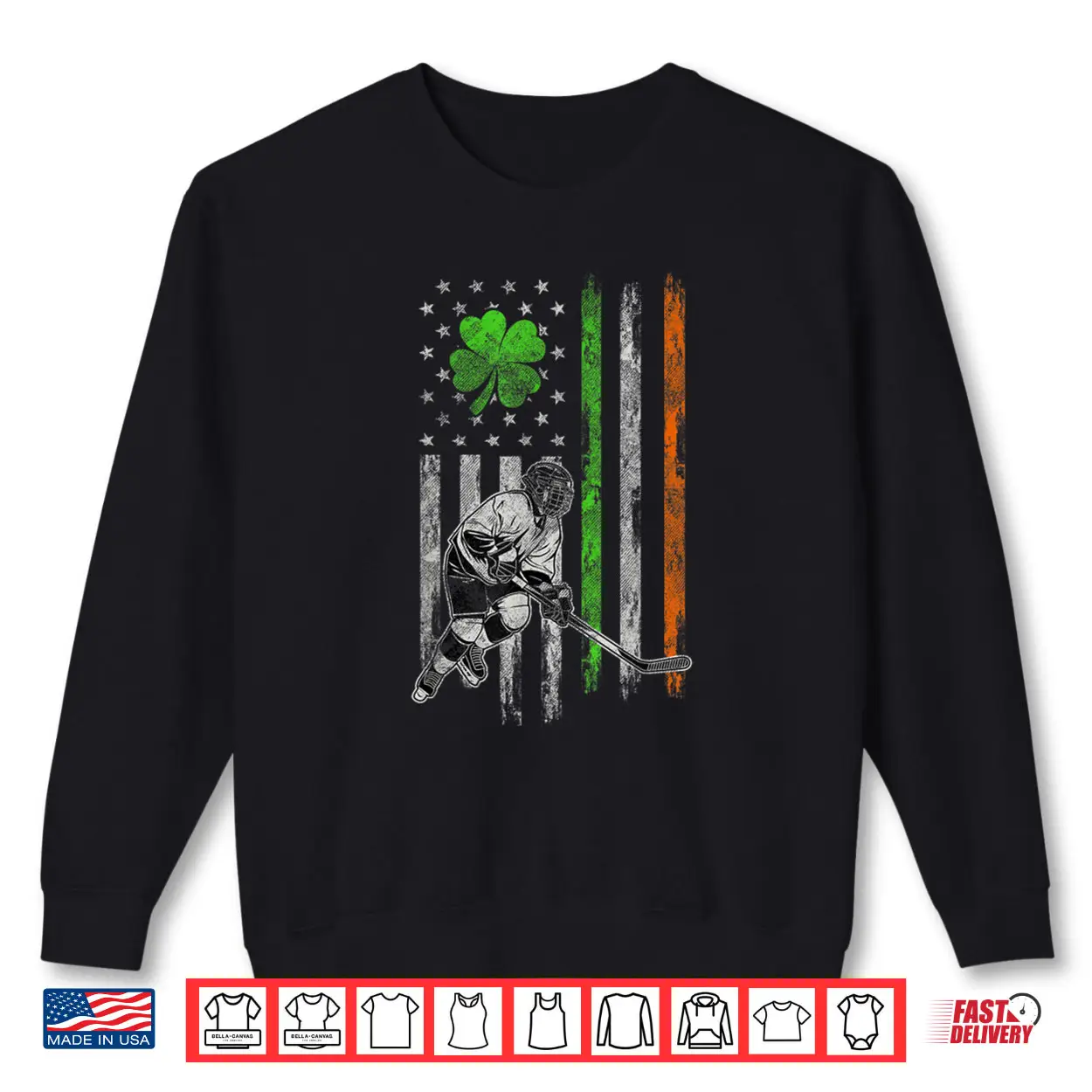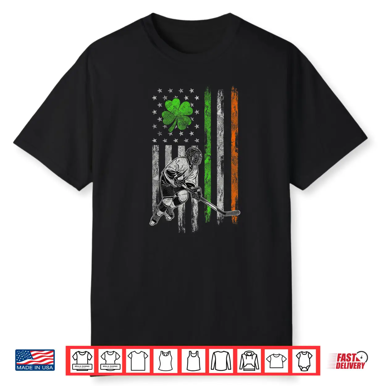 Hockey American Irish Flag St Patricks Day Shamrock Leaf Shirt