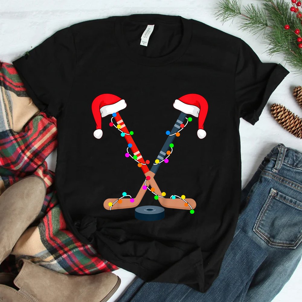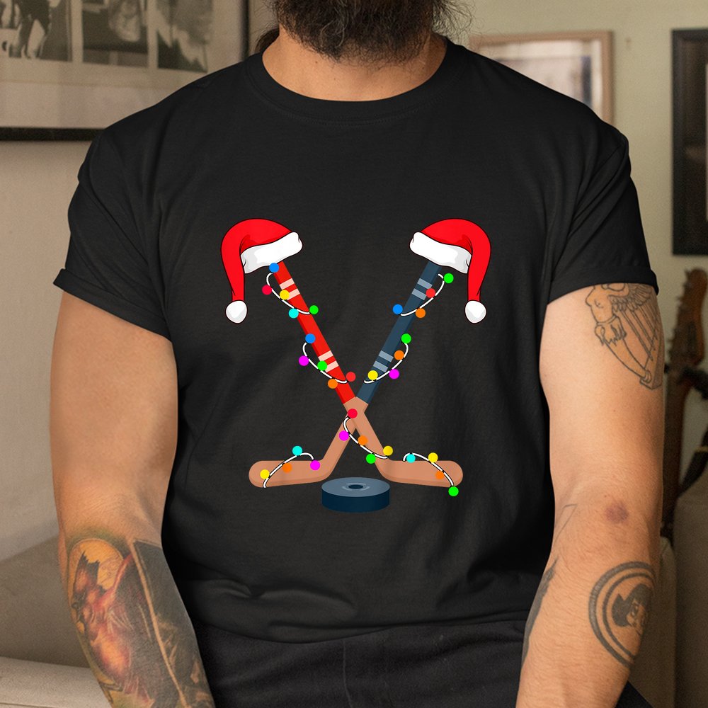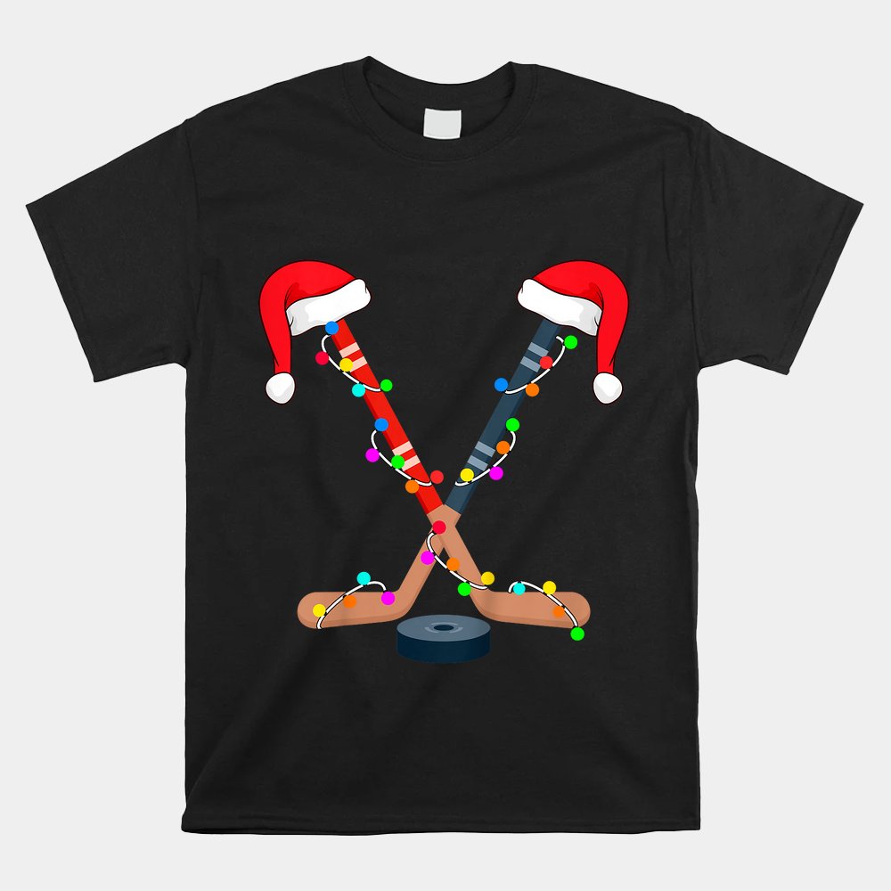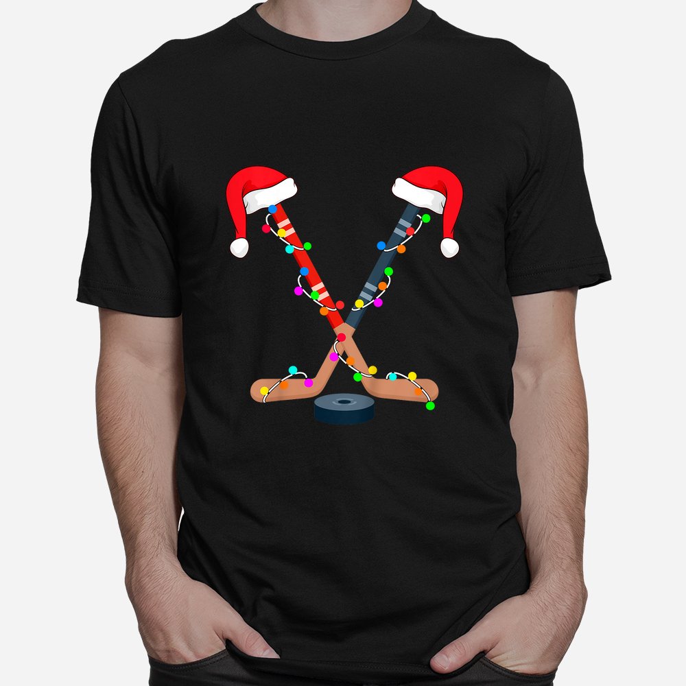 Hockey Santa Hat Christmas Lights Shirt, hoodie, sweatshirt, long sleeve and ladies T-shirt