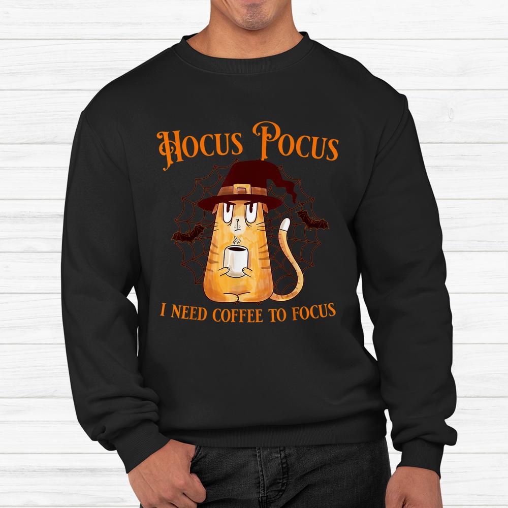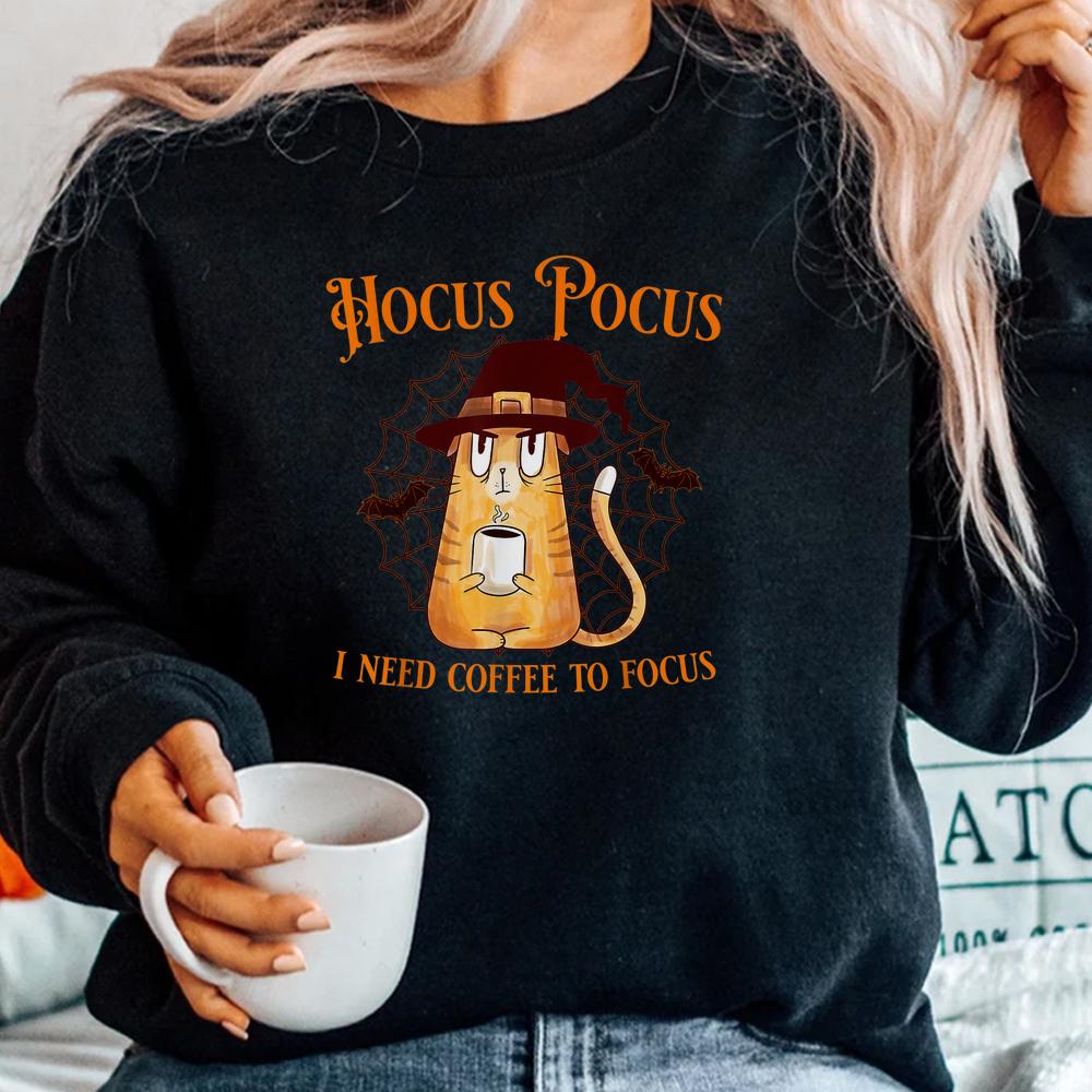 Hocus Pocus I Need Coffee To Focus Teacher Halloween Cat Shirt, hoodie, sweatshirt, long sleeve and ladies T-shirt