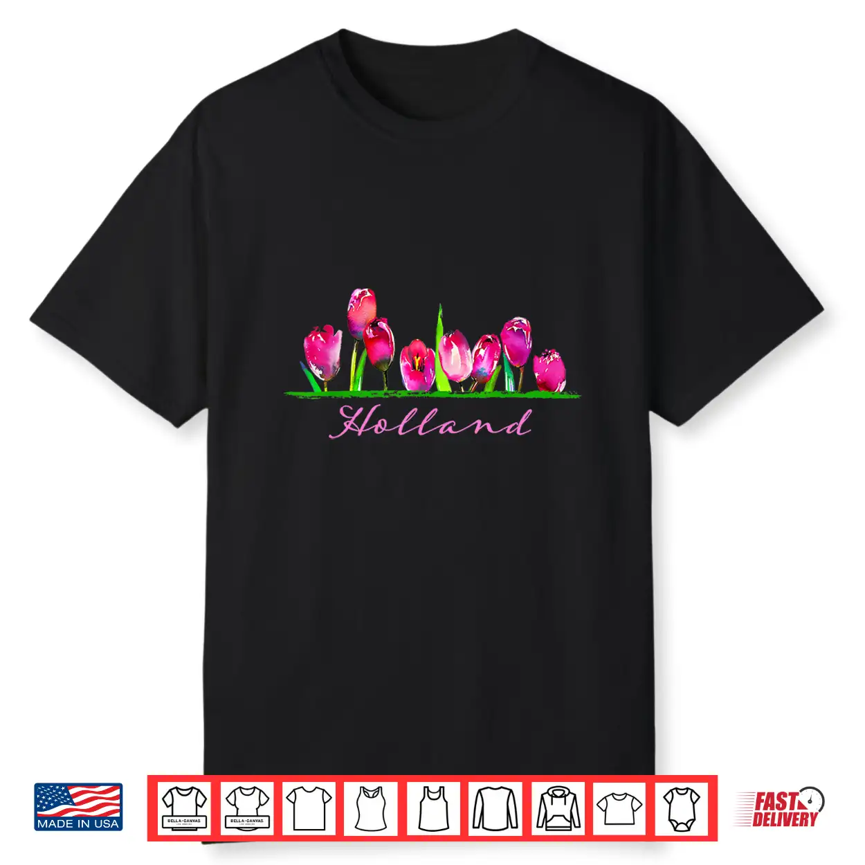 Holland Watercolor Tulip Flower Botanical Floral Design Shirt