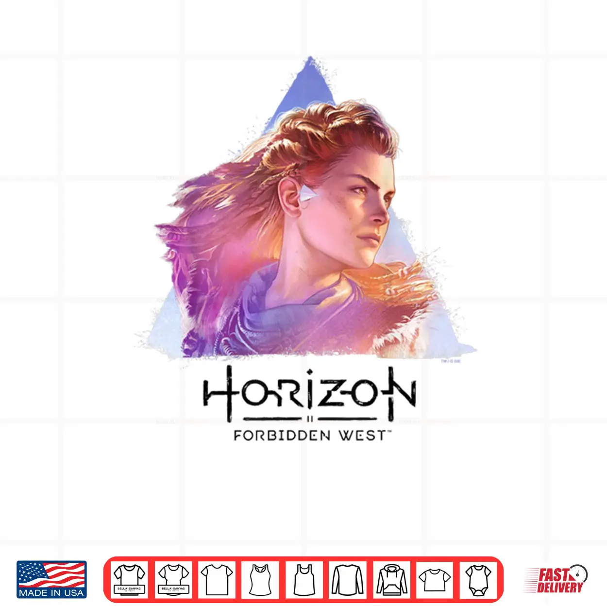 horizon forbidden west, aloy portrait, character art, playstation, video games, aesthetic, gaming, fan gear, shirt
