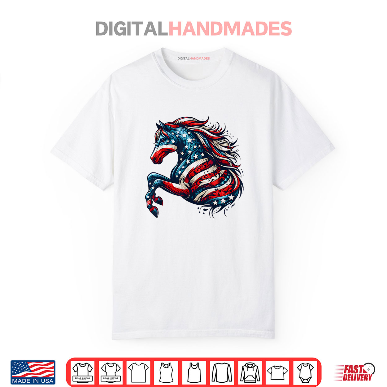 Horse 4th Of July Patriotic Horse Graphic American Flag shirt, Equestrian Independence Day shirt, Patriotic Horse Lover shirt, American Flag Horse Art shirt, Fourth Of July Farm Animal shirt, USA Pride Horseback shirt, Red White Blue Equine shirt, Country Style Holiday shirt, Majestic Horse Patriot shirt, Horse Riding USA shirt