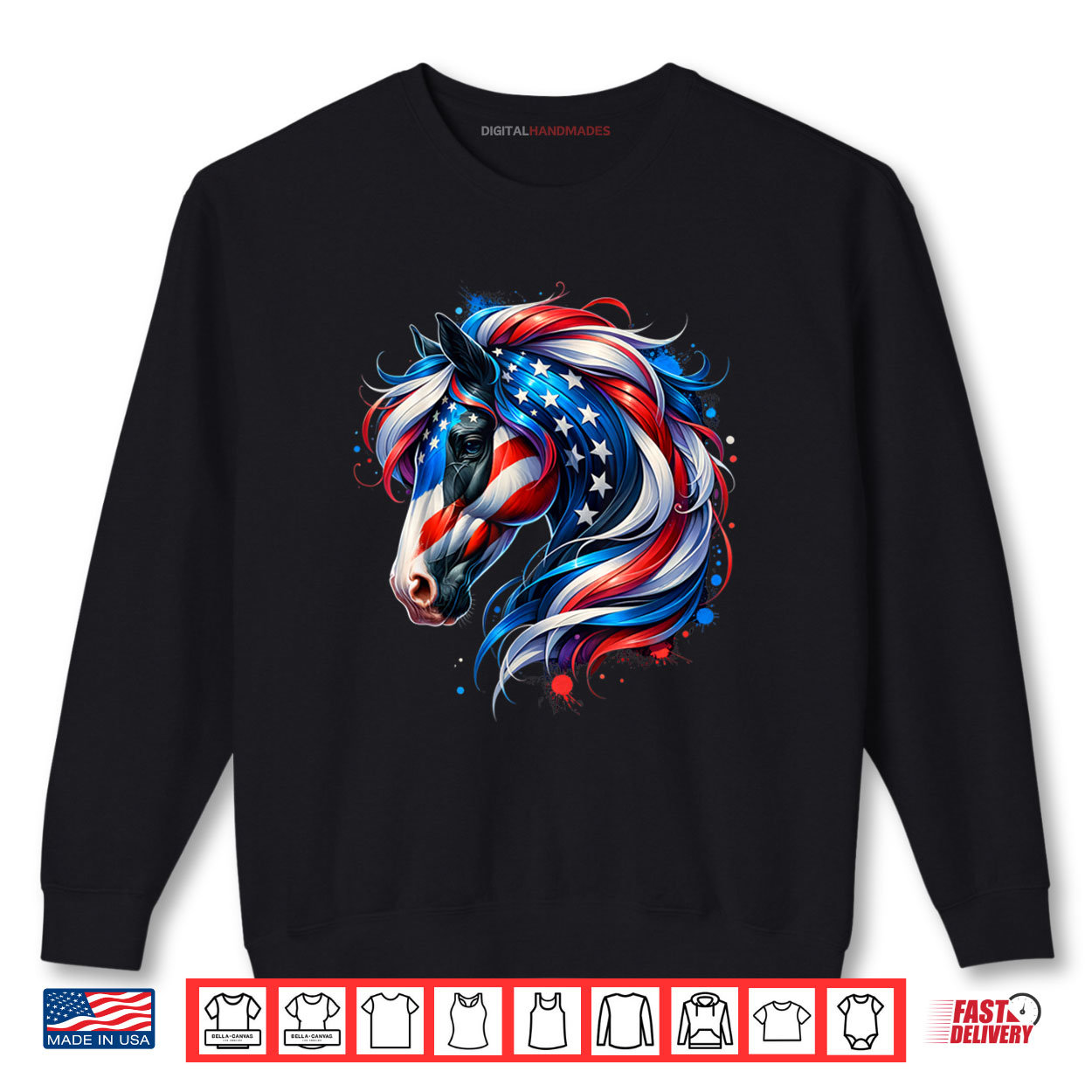 Horse 4th Of July Patriotic Horse Graphic American Flag Shirt, Patriotic Horse July 4th American Flag Graphic Tee Top Shirt, Equestrian Holiday Celebration Wear Fun Style Proud Fan Shirt, Fourth Of July Horse Lover Gift Lady Chic Sweet Cute Shirt, USA Pride Horseback Riding Love Heart Ride Hip Hop Rule Shirt, Independence Day Farm Animal And Flag Lady Proud Fan Chic Sweet Shirt, Red White Blue Equine Beauty Cute Love Heart Ride Hip Hop Shirt, Stars And Stripes And Majestic Horses Fan Chic Sweet Cute Love Heart Ride Shirt, All American Country Life With Horses Sweet Cute Love Heart Ride Hip Hop Rule Lady Proud Fan Shirt, Summer Riding Patriotism Apparel Chic Sweet Cute Love Heart Ride Hip Hop Rule Lady Proud Fan Shirt