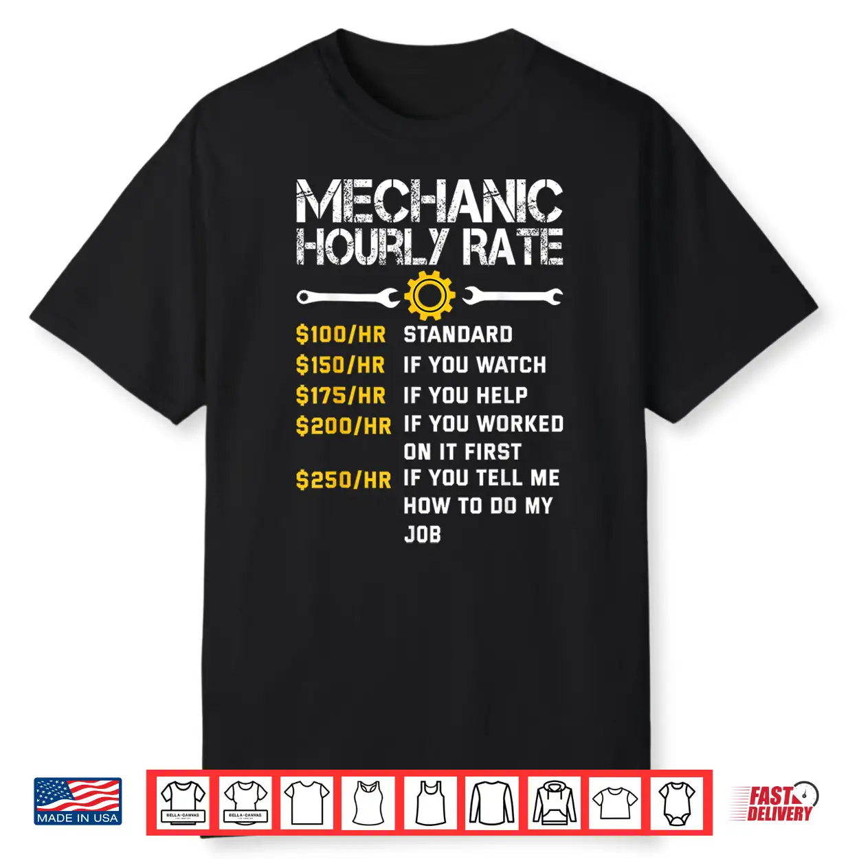Hourly Rate Labor Rates Mechanic Shirt