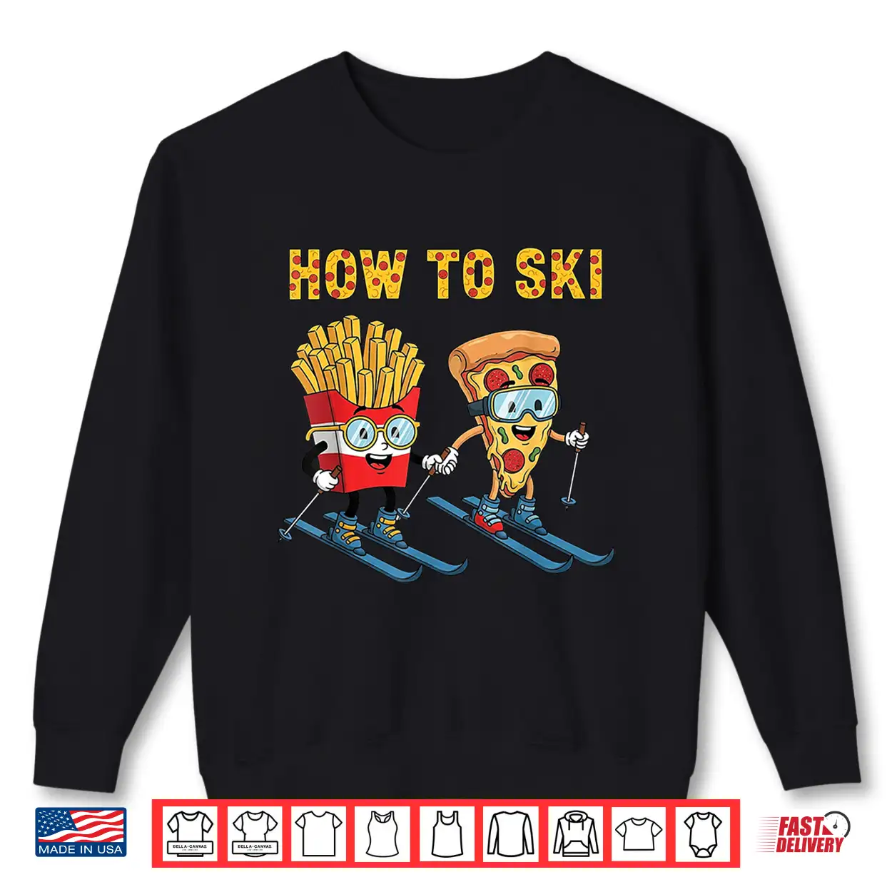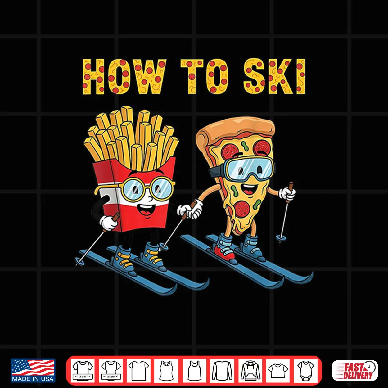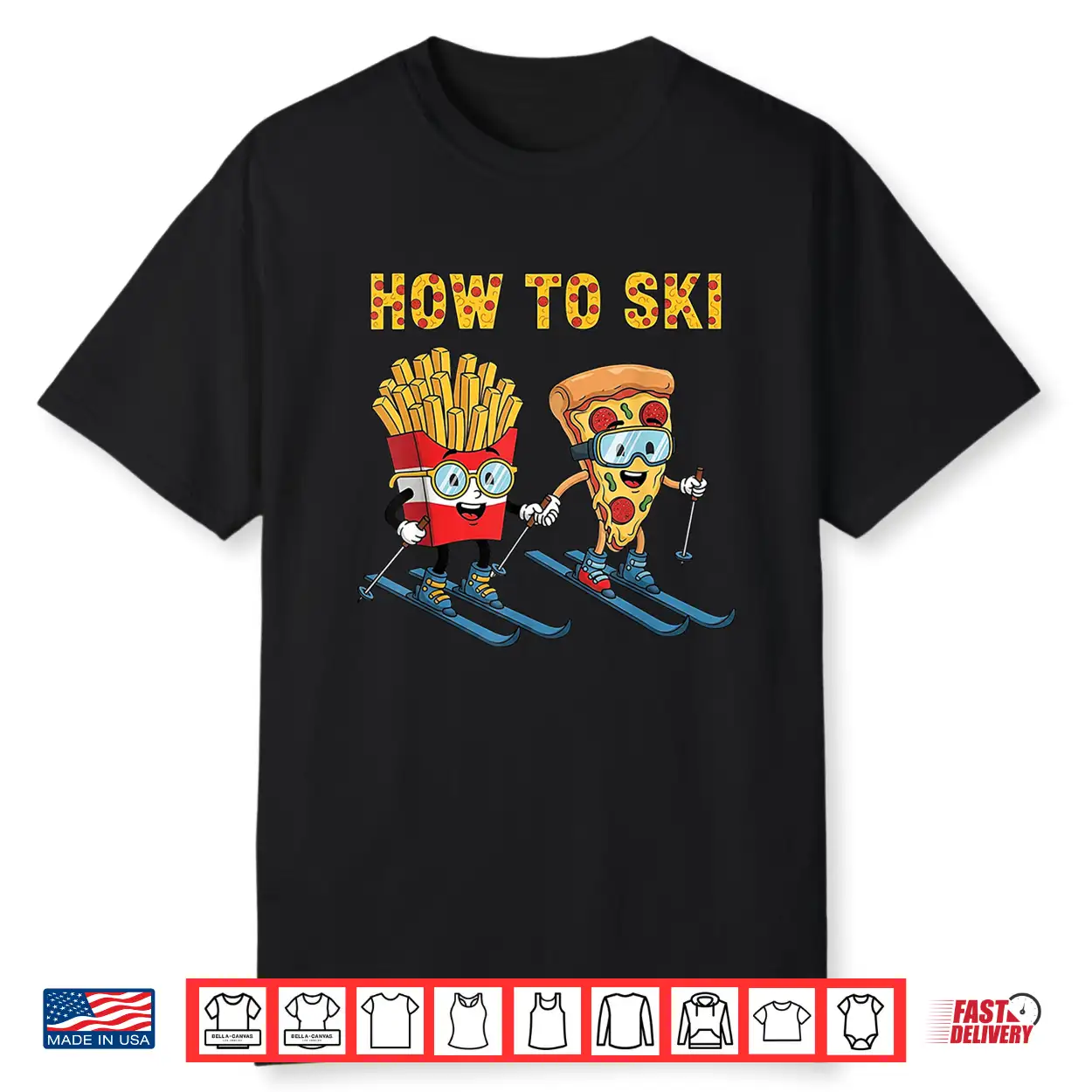 How To Ski Funny Pizza French Fries Skiing Boys Girls Kids Shirt